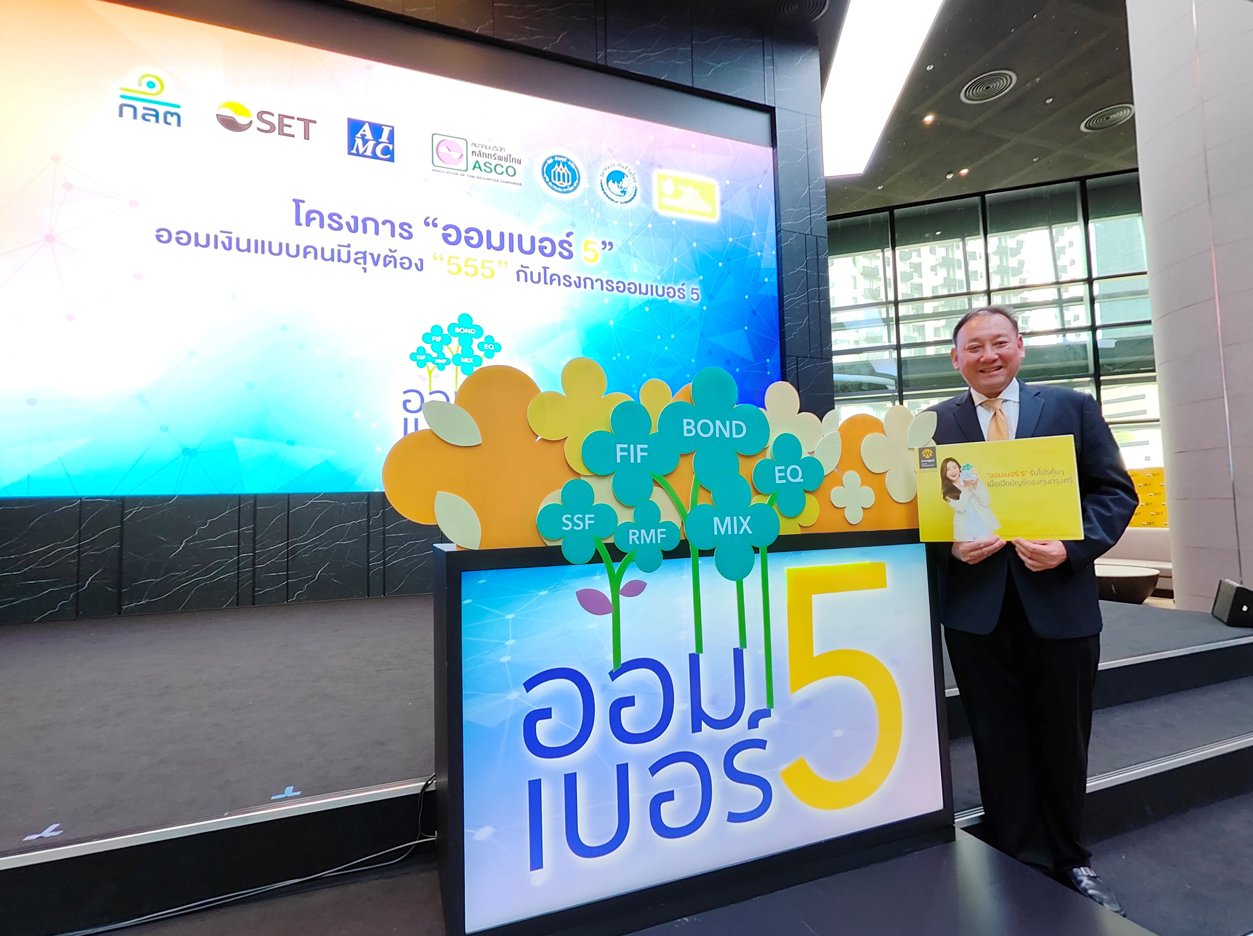 7 กันยายน 2566 : เอนกพร โพธิทัต ประธานเจ้าหน้าที่บริหารกลุ่มตัวแทนขาย บลจ.กรุงศรี ร่วมงานแถลงข่าวเปิดตัวโครงการออมเบอร์ 5 ส่งเสริมการลงทุนในกองทุนรวม พร้อมจัดโปรโมชั่นมอบหน่วยลงทุนกองทุน KFCASH-A มูลค่า 500 บาทสำหรับลูกค้าใหม่ที่ไม่เคยมีบัญชีกองทุนกรุงศรีมาก่อน เมื่อเปิดบัญชีตรงกับบลจ.กรุงศรี หรือเปิดบัญชีผ่าน @ccess Mobile App และลงทุน 5,000 บาทขึ้นไปภายในเดือนพฤศจิกายนนี้ แล้วลงทุนสม่ำเสมอต่อเนื่องในกองทุนใดกองทุนหนึ่งทุกเดือน ขั้นต่ำเดือนละ 500 บาท เป็นเวลา 12 เดือน