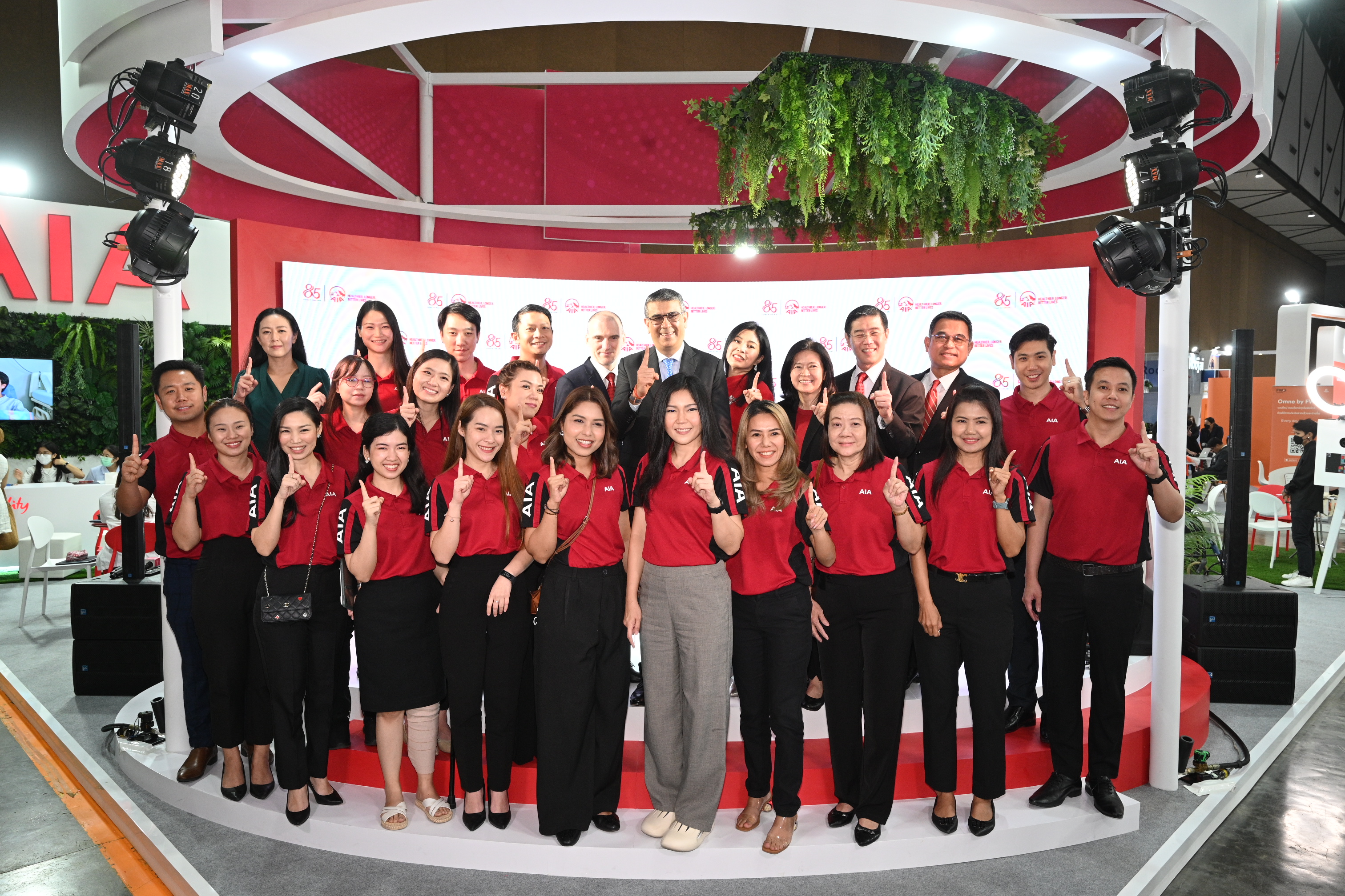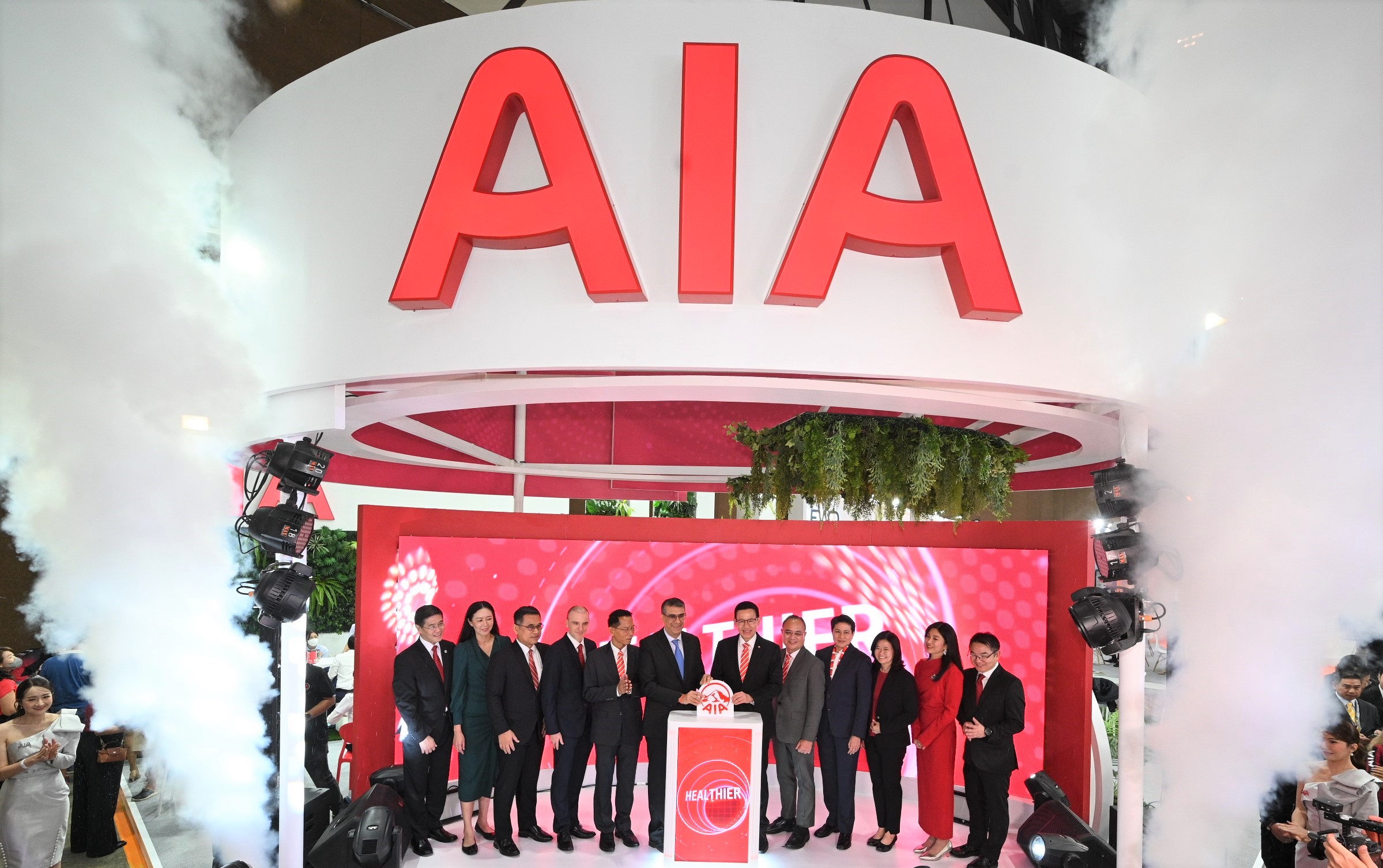 นำโดย นิคฮิล แอดวานี (ที่ 6 จากซ้าย) ประธานเจ้าหน้าที่บริหาร, โยฮัน ดีทอย (ที่ 4 จากซ้าย) ประธานเจ้าหน้าที่ฝ่ายการลงทุน, ดำรงศักดิ์ ขุนทอง (ที่ 3 จากซ้าย) ผู้อำนวยการฝ่ายขายภูมิภาค 2, สลักจิต นิลประเสริฐศักดิ์ (ที่ 3 จากขวา) ผู้อำนวยการฝ่ายสนับสนุนช่องทางการขาย, รพีพร วงศ์ทองคำ (ที่ 2 จากขวา) ผู้อำนวยการฝ่ายสื่อสารองค์กรและภาพลักษณ์, สุวิรัช พงศ์เสาวภาคย์ (ขวาสุด) ผู้อำนวยการฝ่ายกิจการภายนอก, ธีรนุช ทำนุพันธุ์ (ที่ 2 จากซ้าย) ผู้อำนวยการฝ่ายกลยุทธ์และบริหารสำนักงานตัวแทนประกันชีวิต และ นพ.ประมุกข์ ทรงจักรแก้ว ที่ปรึกษาอาวุโส ฝ่ายปฏิบัติการ (ซ้ายสุด) เป็นตัวแทนร่วมในพิธีเปิดบูธเอไอเอ ซึ่งได้รับเกียรติจาก ดร.สุทธิพล ทวีชัยการ เลขาธิการ สำนักงานคณะกรรมการกำกับและส่งเสริมการประกอบธุรกิจประกันภัย (คปภ.) พร้อมด้วยคณะ เป็นประธานในพิธี