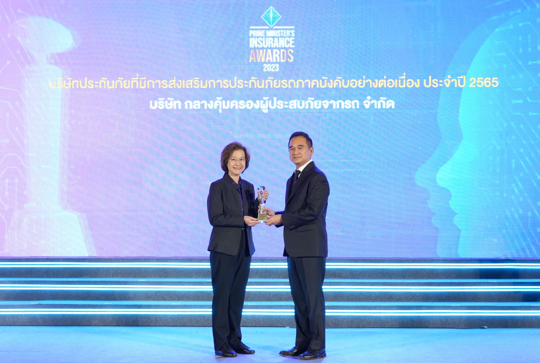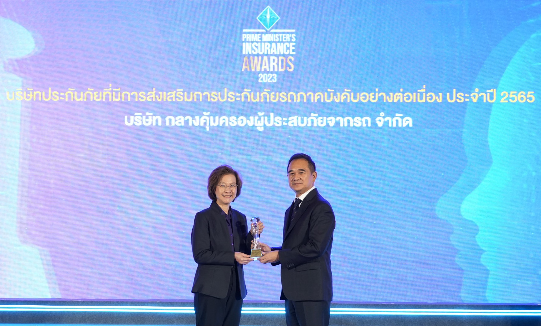 11 กันยายน 2566 : บริษัท กลางคุ้มครองผู้ประสบภัยจากรถ จำกัด โดย พรรณี ปิติกุลตัง กรรมการผู้จัดการ รับรางวัลบริษัทประกันภัยที่มีการส่งเสริมการประกันภัยรถภาคบังคับอย่างต่อเนื่อง ประจำปี 2565 จาก กฤษฎา จีนะวิจารณะ รัฐมนตรีช่วยว่าการกระทรวงการคลัง ประธานในพิธีมอบรางวัลประกันภัยดีเด่นครบวงจร ประจำปี 2566 (Pime Minister’s Insurance Awards 2023) ซึ่งจัดโดยสำนักงานคณะกรรมการกำกับและส่งเสริมการประกอบธุรกิจประกันภัย (คปภ.)