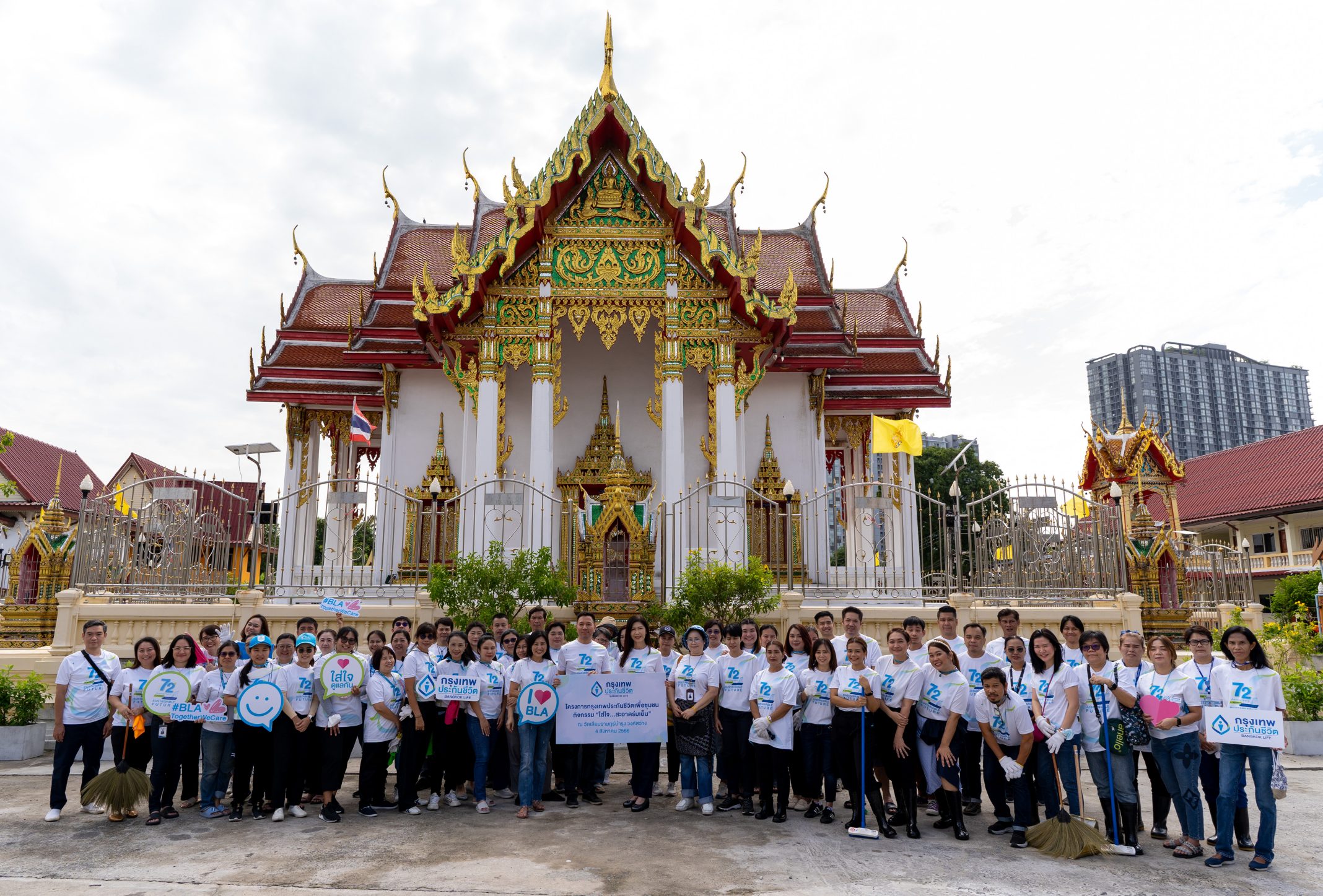 19 กันยายน 2566 : บริษัท กรุงเทพประกันชีวิต จำกัด (มหาชน) จัดกิจกรรมเพื่อสังคมเนื่องในวาระครบรอบ 72 ปี รวมพลพนักงานจิตอาสาร่วมทำดี ส่งต่อความใส่ใจ ส่งเสริมคุณภาพชีวิตที่ดีแก่ชุมชน ด้วยการปลูกต้นไม้รอบพระอุโบสถ ทำความสะอาด และมอบสิ่งของเพื่อสาธารณประโยชน์ พร้อมกิจกรรม“BLA Fit Check, Together We Care” ร่วมดูแลสุขภาพร่างกาย – สุขภาพการเงิน ให้บริการตรวจสุขภาพเบื้องต้น