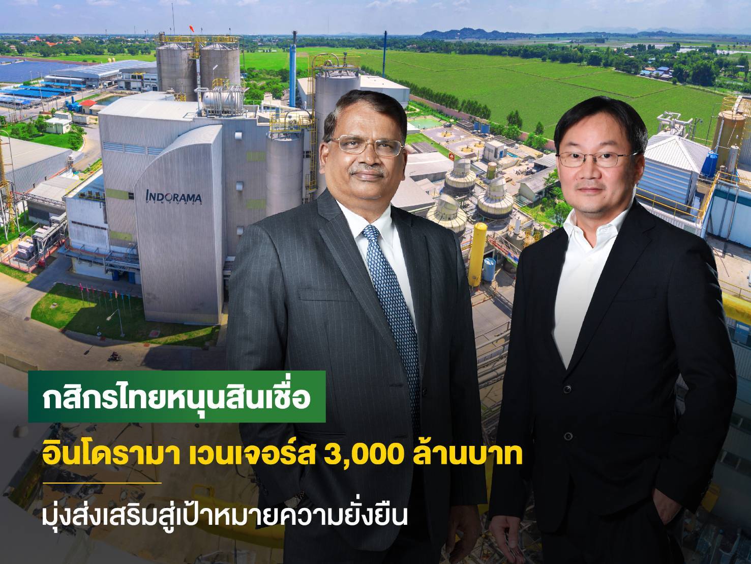 นายดีลิป กุมาร์ อากาวาล รองประธานเจ้าหน้าที่บริหารกลุ่มบริษัทฯ และประธานเจ้าหน้าที่บริหารด้านการเงิน อินโดรามา เวนเจอร์ส กล่าวว่า เรามีความยินดีที่ได้รับการสนับสนุนวงเงินสินเชื่อที่เชื่อมโยงกับการดำเนินงานด้านความยั่งยืน (Sustainability-Linked Loan) และได้ร่วมมือกับธนาคารกสิกรไทยในครั้งนี้ ซึ่งเป็นส่วนสำคัญที่สนับสนุนความมุ่งมั่นของอินโดรามา เวนเจอร์สที่มีต่อการจัดหาเงินทุนเพื่อความยั่งยืนสอดคล้องไปกับกลยุทธ์ของการดำเนินงานของเรา เพื่อให้บรรลุเป้าหมายด้าน ESG ของอินโดรามา เวนเจอร์ส และตอกย้ำเป้าหมายในการร่วมกันยกระดับเคมีภัณฑ์เพื่อโลกที่ดีกว่า