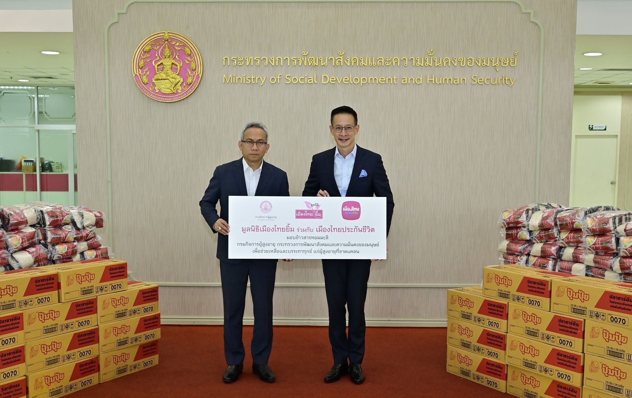 12 ตุลาคม 2566 : สาระ ล่ำซำ ประธานเจ้าหน้าที่บริหาร บริษัท เมืองไทยประกันชีวิต จำกัด (มหาชน) และพิตราภรณ์ บุณยรัตพันธุ์ รองประธานกรรมการ มูลนิธิเมืองไทยยิ้ม ร่วมมอบเครื่องบริโภค ได้แก่ ข้าวสารและปลากระป๋อง ให้แก่ อนุกูล ปีดแก้ว ปลัดกระทรวงการพัฒนาสังคมและความมั่นคงของมนุษย์ เพื่อส่งเสริมและสนับสนุนการบริหารจัดการของทางภาครัฐ ส่งมอบให้กับผู้สูงอายุและกลุ่มเปราะบางที่ประสบปัญหาความเดือดร้อนทางสังคม โดยเฉพาะผู้ได้รับผลกระทบจากอุทกภัยในพื้นที่ต่างๆ