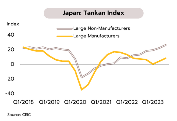 อย่างไรก็ตาม เนื่องจากสัดส่วนน้ำมันดิบที่ญี่ปุ่นนำเข้าจากตะวันออกกลางอยู่ที่ 95% หากกรณีที่สงครามอิสราเอล-ฮามาส มีการขยายขอบเขตไปสู่ภูมิภาคตะวันออกกลางจนส่งผลให้ราคาของน้ำมันดิบมีแนวโน้มปรับเพิ่มสูงขึ้นอาจนำไปสู่จุดเปลี่ยนทิศทางของนโยบายการเงินเร็วกว่าที่ตลาดคาดและกระทบต่อเศรษฐกิจของญี่ปุ่นให้มีโอกาสหดตัวได้ในช่วง 2-3 ไตรมาสข้างหน้า