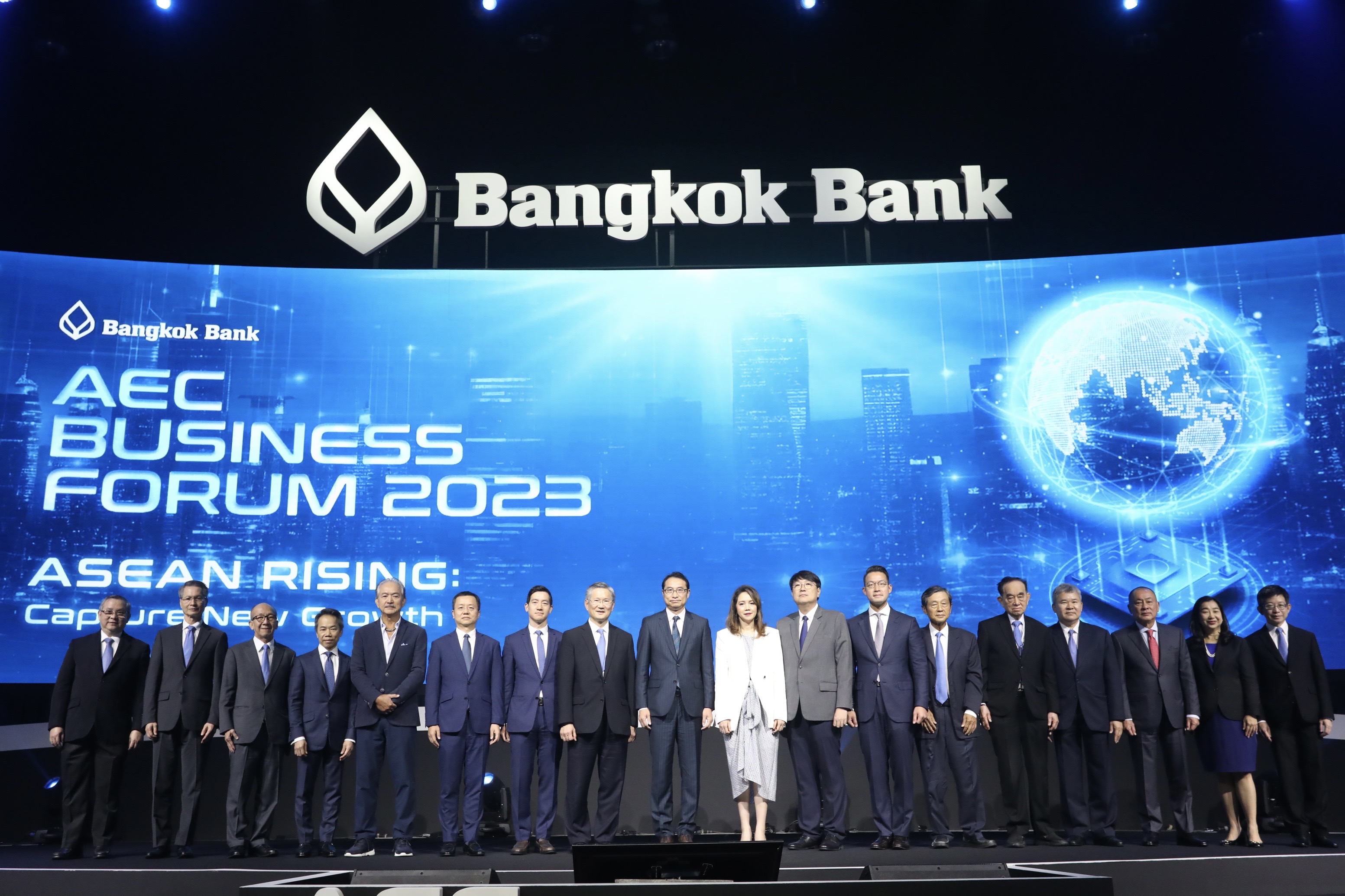 โอกาสนี้ ธนาคารกรุงเทพ ในฐานะ ‘สถาบันการเงินชั้นนำของภูมิภาค’ ได้จัดสัมมนาประจำปี AEC Business Forum 2023 ซึ่งจัดขึ้นเป็นปีที่ 5 และนับเป็นครั้งแรกภายหลังการแพร่ระบาดของโรคโควิด-19 โดยปีนี้จะจัดขึ้นภายใต้หัวข้อ “ASEAN Rising : Capture New Growth” เพื่อสนับสนุนให้นักธุรกิจไทยสามารถไขว่คว้าโอกาสที่มีอยู่มากมายทั่วภูมิภาค และมองเห็นโอกาสใหม่ ๆ จากธุรกิจอุตสาหกรรมที่กำลังเติบโตได้มากขึ้น โดยธนาคารได้รับเกียรติจากวิทยากรผู้ทรงคุณวุฒิ ตลอดจนนักธุรกิจชั้นนำของภูมิภาคอาเซียนตอบรับเข้าร่วมอภิปรายและแสดงวิสัยทัศน์อย่างคับคั่งเช่นเดิม