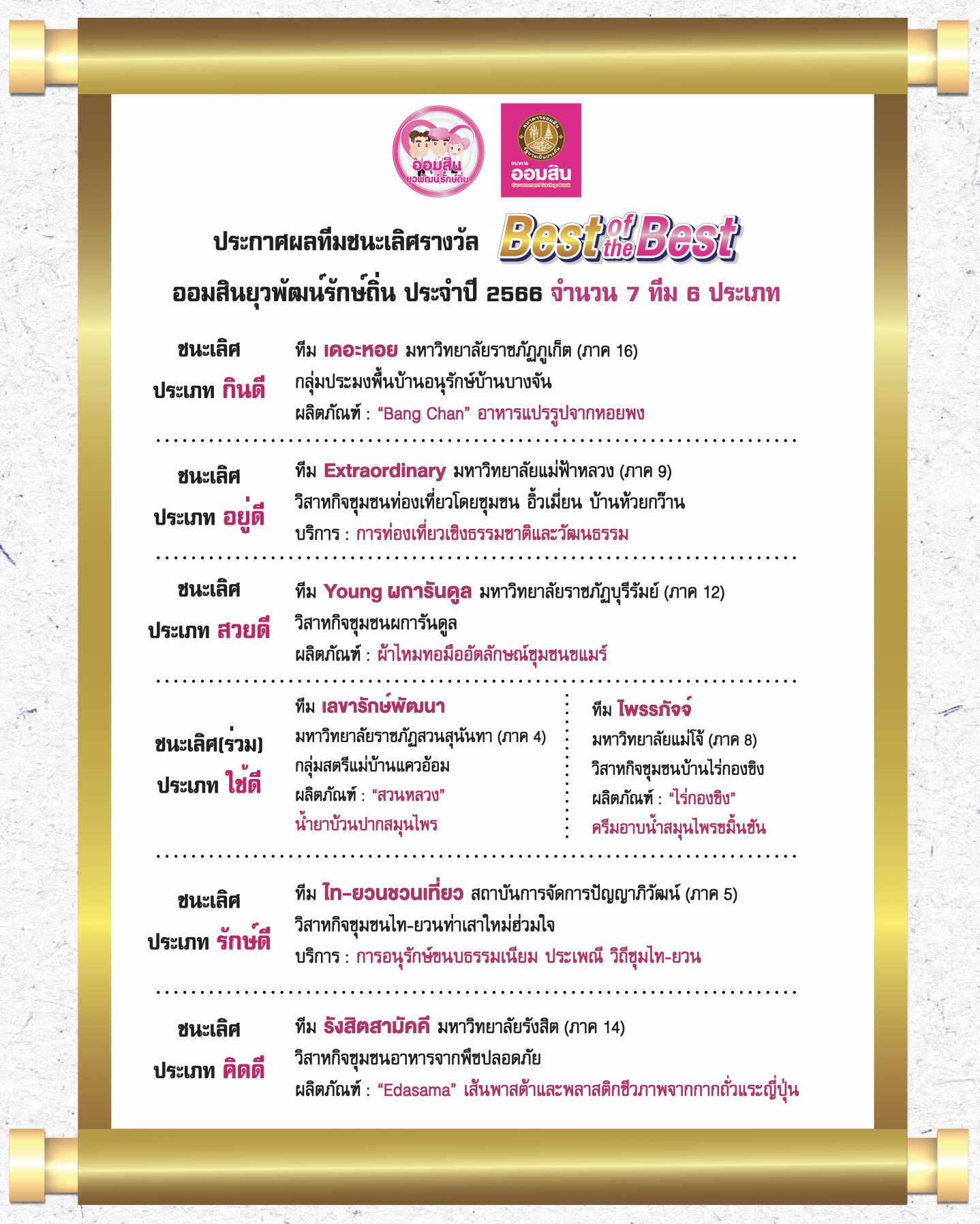 สำหรับทีมชนะเลิศ Best of the Best ประจำปี 2566 มีดังนี้