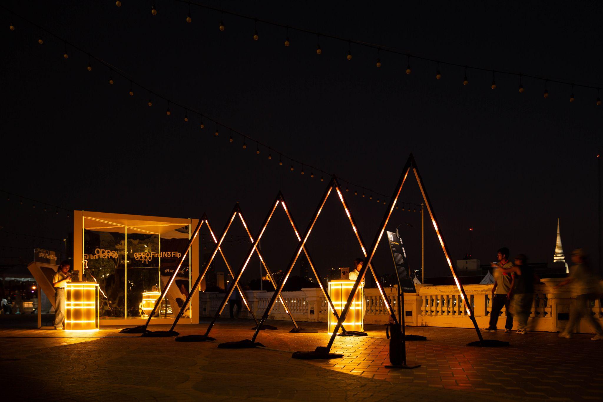 โดยภายในงานจะได้พบกับ 29 ผลงานอาร์ต ที่กระจายตัวสร้างสีสันยามค่ำคืนในแต่ละแลนด์มาร์กสำคัญทั้ง 13 จุด รอบย่านพระนคร - ปากคลองตลาด ไม่ว่าจะเป็นตลาดยอดพิมาน ท่าเรือราชินี อุทยานสราญรมย์ แพร่งภูธร โรงพิมพ์บำรุงนุกูลกิจ ลานคนเมือง สร้างแรงบันดาลใจเปี่ยมไปด้วยวิถีชีวิตของผู้คน และในงานนี้ออปโป้ได้ร่วมสร้างสีสัน เพื่อตอกย้ำนิยามใหม่ของการพับที่ดีกว่า ด้วยการจัดตั้งผลงานอย่าง FLIP : Feel Like an Infinite Passage presented by OPPO ที่ Yodpiman River Walk มอบสีสันยามค่ำคืนที่เปี่ยมด้วยแรงบันดาลใจจาก OPPO Installation สะท้อน ความเป็นผู้นำในด้านการถ่ายภาพของของออปโป้ด้วยสมาร์ตโฟนจอพับที่ดีกว่า “OPPO Find N3 Flip”