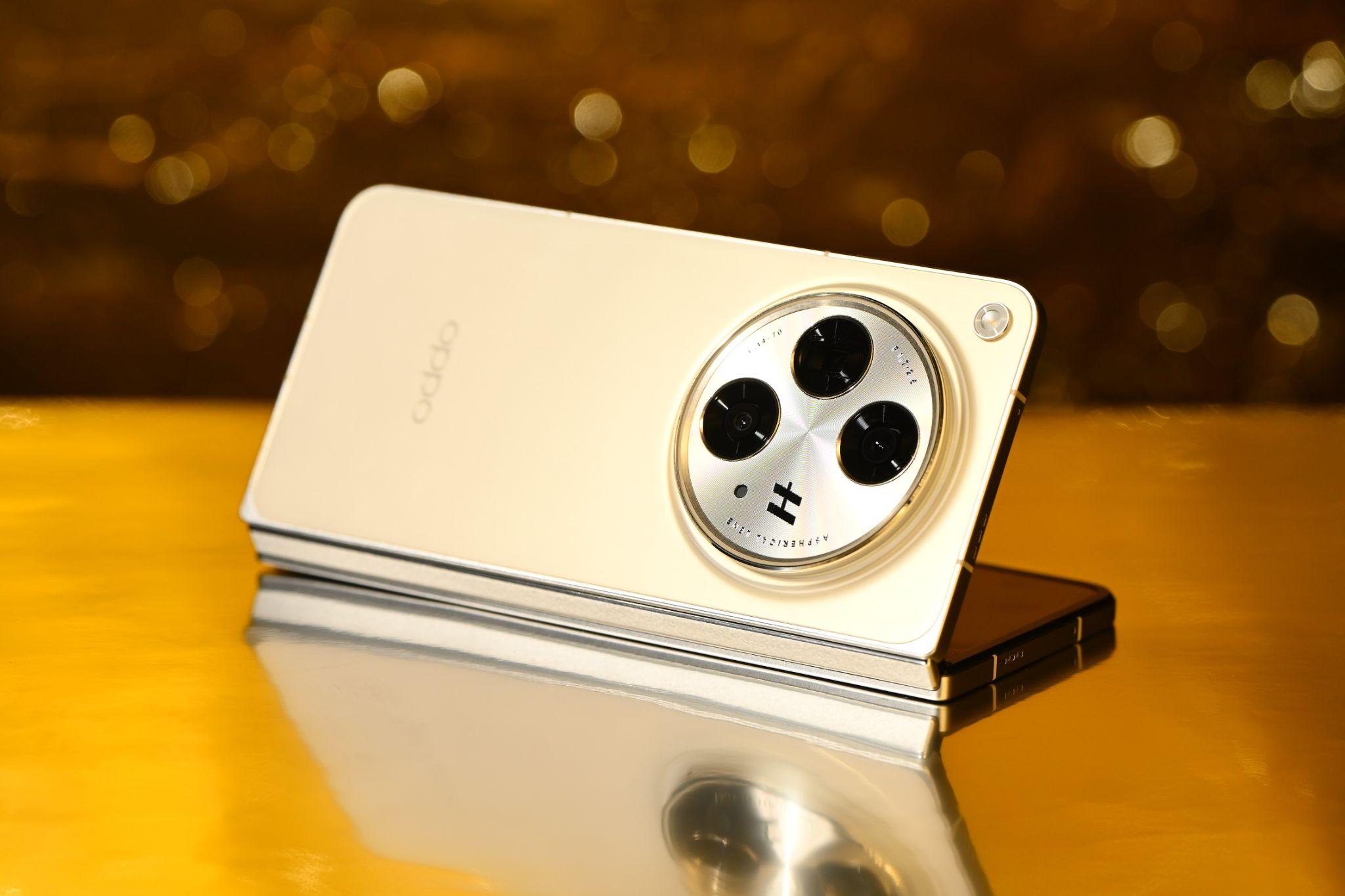 ออปโป้พร้อมมอบประสบการณ์นิยามใหม่แห่งการพับด้วย OPPO Find N3 Flip สมาร์ตโฟนจอพับกับสไตล์สุดคลาสสิค บนระบบกล้องหลังที่มาพร้อมวงแหวน Cosmos Ring ซึ่งล้อมรอบด้วย Starlight Track มาในสีใหม่หมดจด ได้แก่ สีทอง Cream Gold, สีชมพู Misty Pink และสีดำ Sleek Black ด้วยระบบ Flexion Hinge รุ่นที่ 3 ทำให้พับเปิด-ปิดลื่นไหล ทนทาน และมีรอยพับบนหน้าจอที่แทบมองไม่เห็น มาพร้อมกล้องหลัก 3 ตัว ให้ภาพพอร์ตเทรตสวยและมีสไตล์ที่สุด ในตลาด และมีเอกลักษณ์แบบฉบับของ Hasselblad ในขณะที่หน้าจอด้านนอกที่มีขนาดใหญ่พอที่จะใช้งานตอบข้อความ หรือเลื่อนดูฟีดโซเชียล โดยไม่ต้องเปิดหน้าจอด้านใน