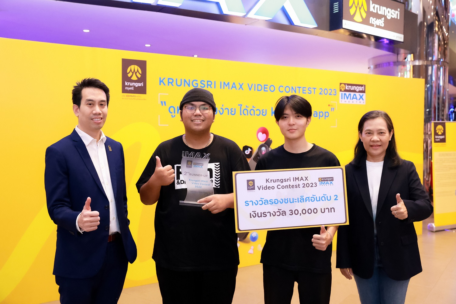 13 ธันวาคม 2566 : ประกาศผลเป็นที่เรียบร้อยกับการประกวดคลิปวีดีโอ “Krungsri IMAX Video Contest 2023” เส้นทางความฝันสู่การเป็นครีเอเตอร์ จัดโดย บริษัท เมเจอร์ ซีนีเพล็กซ์ กรุ้ป จำกัด (มหาชน) ร่วมกับ ธนาคารกรุงศรีอยุธยา จำกัด (มหาชน) เพื่อยกระดับความสามารถครีเอเตอร์ไทยด้วยเวทีประกวดต่อเนื่องสู่ปีที่ 9 เปิดกว้างให้คนรุ่นใหม่ได้ประชันไอเดียสุดสร้างสรรค์ ชิงรางวัลรวมมูลค่ากว่า 200,000 บาท ซึ่งในปีนี้ผลงานโดดเด่นและน่าสนใจที่เข้าตาคณะกรรมการคว้ารางวัลชนะเลิศไปครอง ได้แก่ นายภูวดล ปวงปะชัง นักศีกษามหาวิทยาลัยกรุงเทพ ผลงานมีความสร้างสรรค์สามารถนำไปต่อยอดและประยุกต์ใช้งานจริงได้