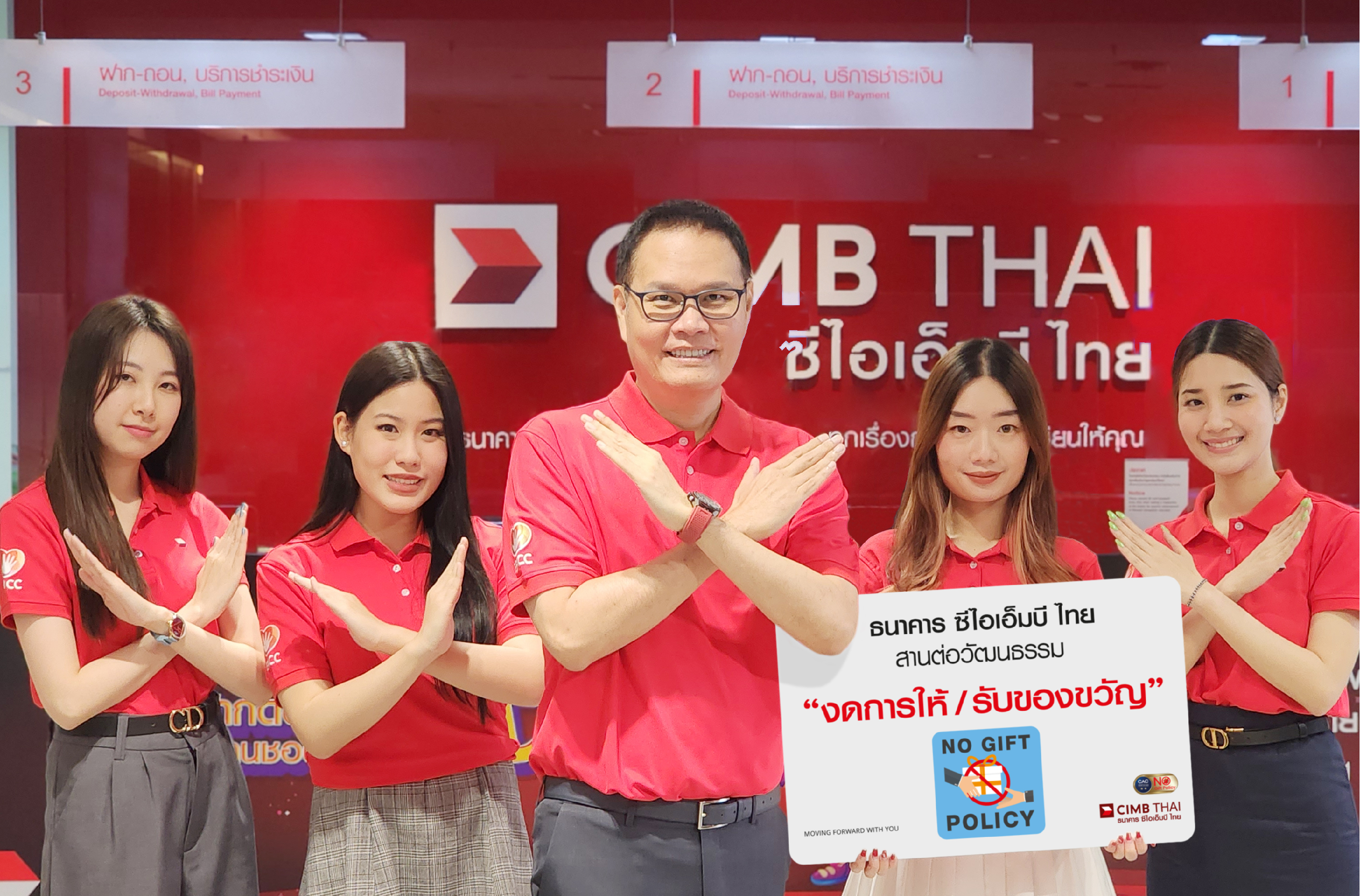 21 ธันวาคม 2566 : เศรษฐจักร ลียากาศ รองกรรมการผู้จัดการใหญ่ กำกับการปฏิบัติงาน ธนาคารซีไอเอ็มบีไทย จำกัด (มหาชน) พร้อมด้วยตัวแทนพนักงานธนาคารและบริษัทในเครือ ร่วมรณรงค์และสานต่อวัฒนธรรม “งดการให้และการรับของขวัญ” ตามนโยบาย No Gift Policy อย่างต่อเนื่องเป็นประจำทุกปี เพื่อเป็นการยืนยันเจตนารมณ์ที่เข้มแข็งของธนาคาร ซีไอเอ็มบี ไทย ในการต่อต้านการทุจริตคอร์รัปชันทุกรูปแบบ ส่งเสริมการปฏิบัติงานด้วยความโปร่งใส ซื่อสัตย์สุจริต มีคุณธรรมและจริยธรรม เสริมสร้างวัฒนธรรมองค์กรที่มีธรรมาภิบาลที่ดี ทั้งนี้ธนาคารจึงขอความร่วมมืองดการมอบของขวัญ ของกำนัล หรือผลประโยชน์อื่นๆ ให้แก่บุคลากรของธนาคารและบริษัทในเครือ