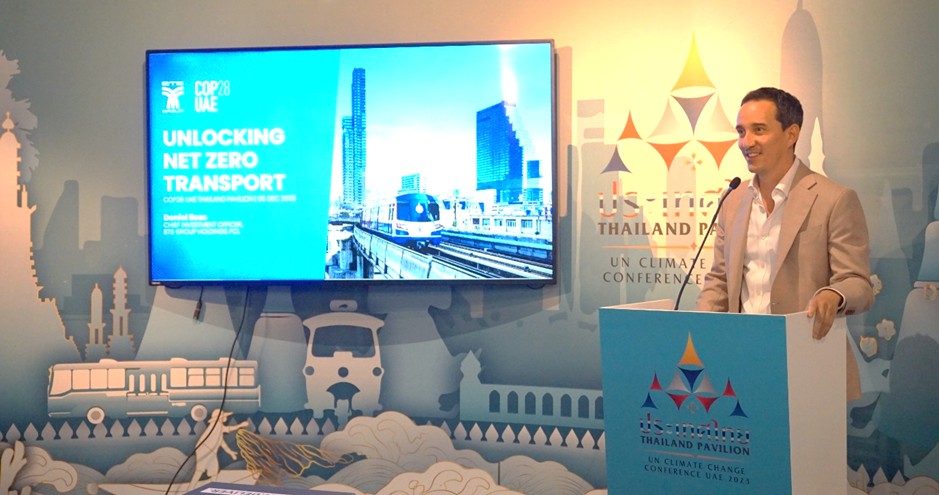 โดยได้นำเสนอ เกี่ยวกับเป้าหมาย การปล่อยก๊าซเรือนกระจกสุทธิเป็นศูนย์ หรือ Net Zero ของบีทีเอส กรุ๊ปฯ และภาคขนส่งของประเทศไทย ในหัวข้อ “Thailand’s Business Leaders to Share Vision and Experiences on Net Zero Transformation” ซึ่งจัดในนิทรรศการ Thailand Pavilion เพื่อที่จะแสดงบทบาทในเชิงบวกของประเทศ พร้อมกับองค์กรเอกชนอื่นๆ