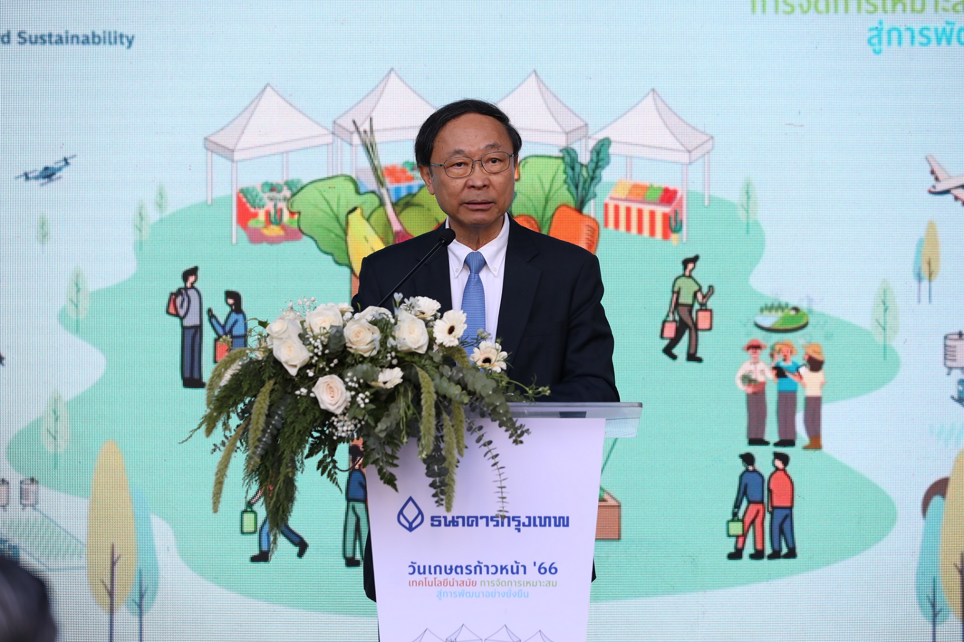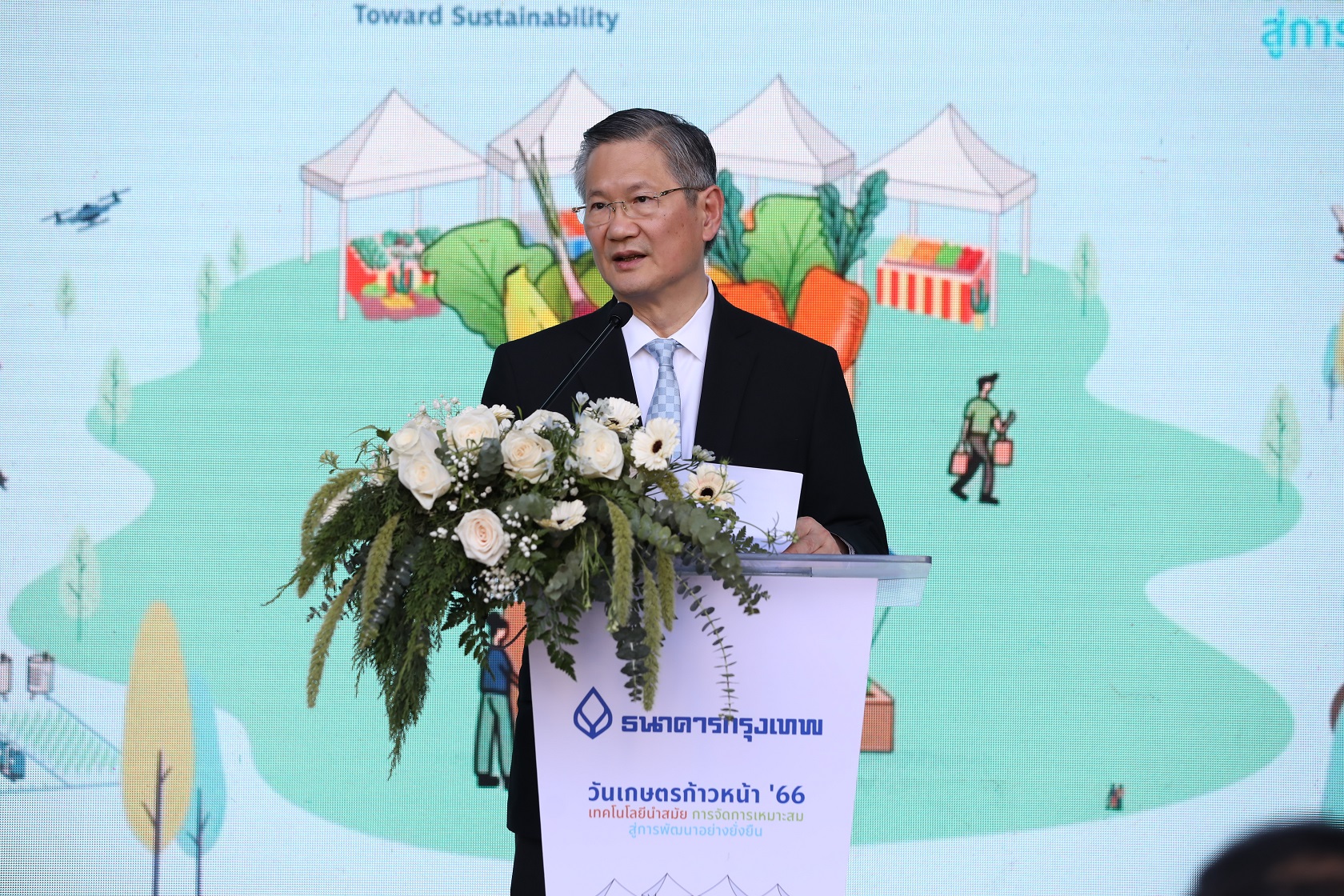 “ประเทศไทยเป็นประเทศกสิกรรม มีเกษตรกรกว่า 7.7 ล้านครัวเรือน เป็นพื้นฐานรายได้ที่สำคัญของไทย ดังนั้นภาคเกษตรไทยจำเป็นต้องเข้มแข็งและมีความยั่งยืน โดยตลอด 24 ปีที่ผ่านมาธนาคารกรุงเทพได้เล็งเห็นความสำคัญของภาคการเกษตร ไม่เพียงแต่บริการทางการเงิน แต่เรายังต้องการสนับสนุนให้ภาคเกษตรมีการปรับตัว และพัฒนาอย่างต่อเนื่อง เพื่อให้เกษตรกรมีรายได้และคุณภาพชีวิตที่ดีขึ้น ซึ่งปัจจุบันถือเป็นยุคที่ 3 หรือ ยุคของนวัตกรรม กระบวนการที่จะพัฒนาต่อไปขึ้นอยู่กับวิทยาศาสตร์และเทคโนโลยีค่อนข้างมาก
