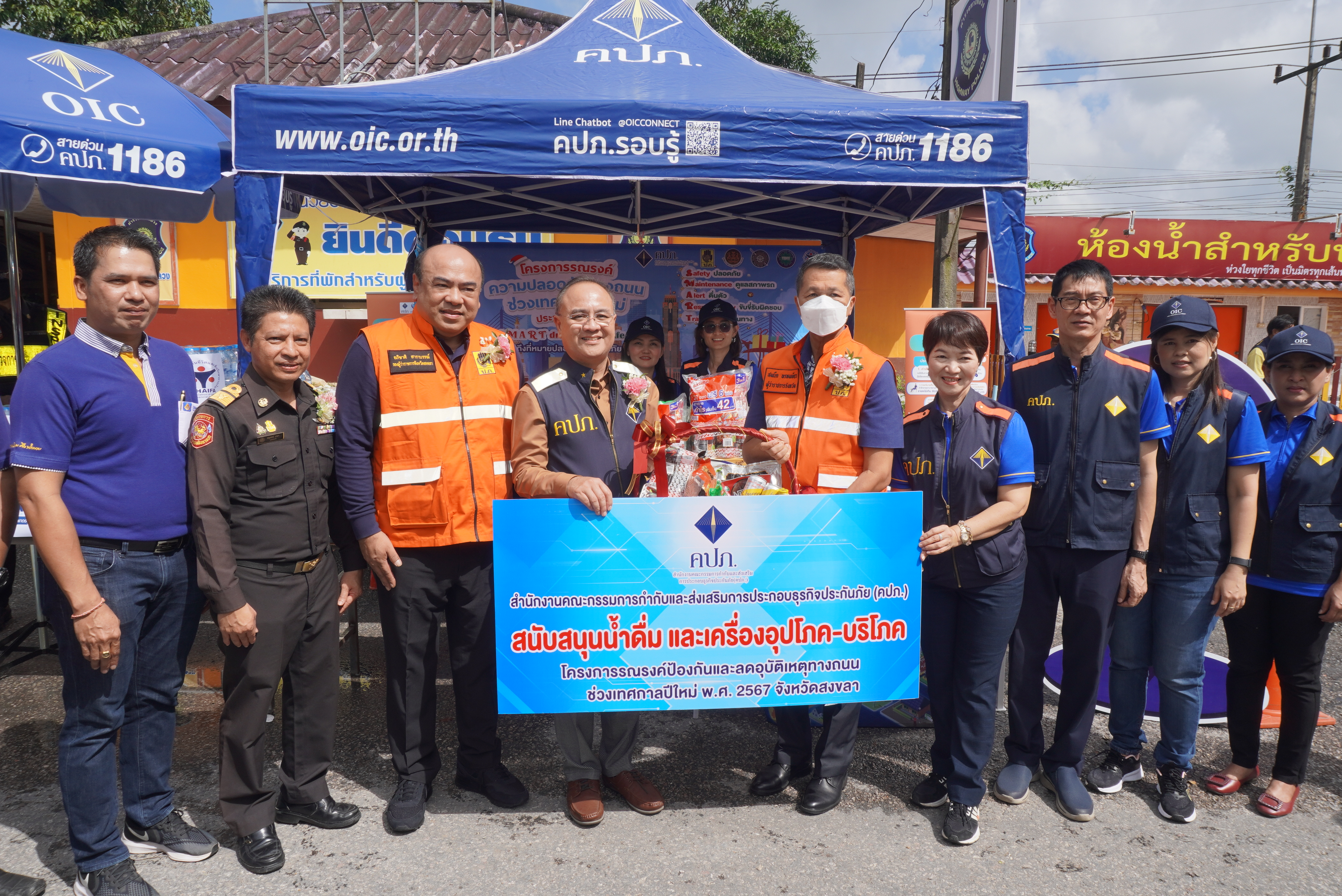 ในการนี้ เลขาธิการ คปภ. ได้มอบน้ำดื่ม และเครื่องอุปโภค-บริโภคให้ผู้ว่าราชการจังหวัดสงขลา เพื่อนำไปมอบให้จุดตรวจเพื่อป้องกันและลดอุบัติเหตุทางถนนช่วงเทศกาลปีใหม่ พ.ศ. 2567 ในจังหวัดสงขลา