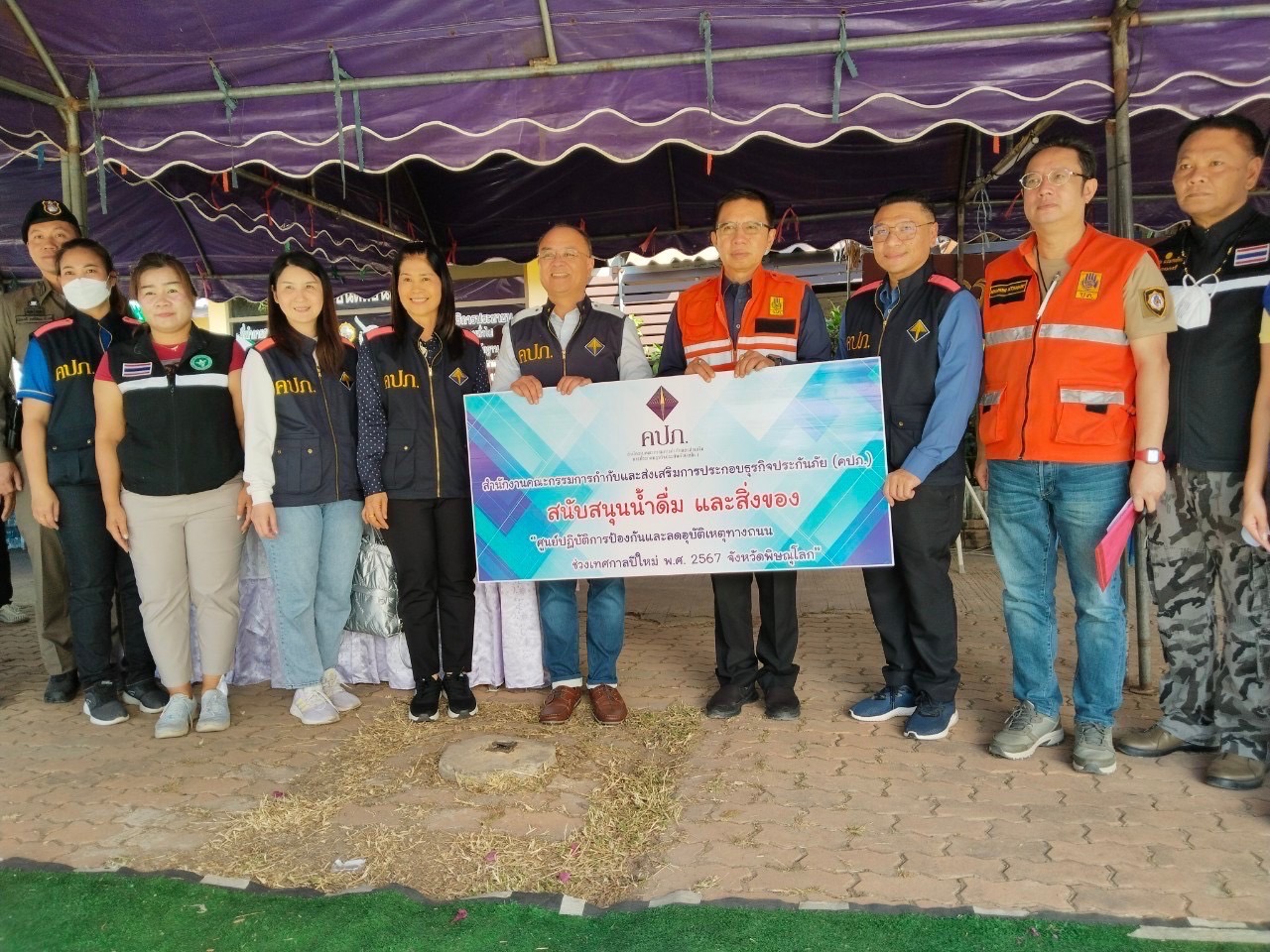 ต่อจากนั้น เมื่อวันที่ 30 ธันวาคม 2566 นายชูฉัตร ประมูลผล เลขาธิการ คปภ. ร่วมกับนางโชลภา ไชยเพียร ผู้อำนวยการภาค สำนักงาน คปภ. ภาค 2 (นครสวรรค์) และนายยศพล จิตติมานุสรณ์ ผู้อำนวยการสำนักงาน คปภ.จังหวัดพิษณุโลก พร้อมทีมงาน ได้มอบน้ำดื่มพร้อมสิ่งของให้แก่ศูนย์อำนวยการป้องกันและลดอุบัติเหตุทางถนนช่วงเทศกาลปีใหม่ พ.ศ. 2567 ณ บริเวณสี่แยกเต็งหนาม แยกทางเข้าบริษัท ไทยแอร์โร่ จำกัด ตำบลหัวรอ อำเภอเมือง จังหวัดพิษณุโลก โดยมีนายภูสิต สมจิตต์ ผู้ว่าราชการจังหวัดพิษณุโลก ร่วมเป็นเกียรติตรวจเยี่ยมเพื่อเป็นขวัญและกำลังใจให้กับเจ้าหน้าที่ผู้ปฏิบัติงานในช่วงเทศกาลปีใหม่