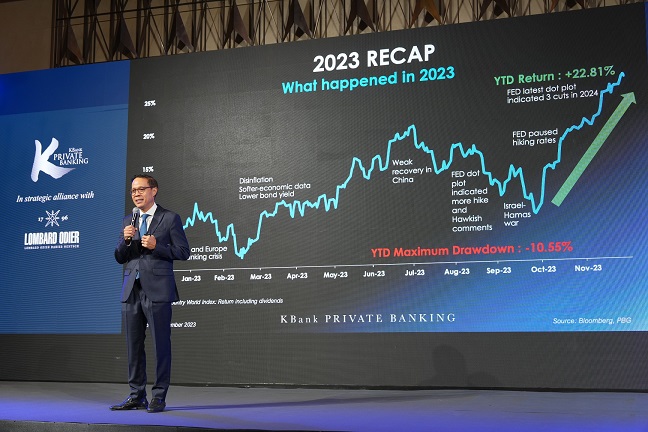 17 มกราคม 2567 : นายจิรวัฒน์ สุภรณ์ไพบูลย์ Executive Chairman, Private Banking Group ธนาคารกสิกรไทย เปิดเผยว่า ในปีที่ผ่านมา ตลาดลงทุนเผชิญกับหลายเหตุการณ์ที่สร้างความผันผวน เริ่มตั้งแต่ปลายไตรมาสแรกที่เสถียรภาพการเงินโลกสั่นคลอน จากการปิดตัวลงของ Silicon Valley Bank (SVB) และวิกฤต Credit Suisse (CS) ในขณะที่ไตรมาส 2 ตลาดปรับตัวขึ้นได้ จากอัตราเงินเฟ้อในสหรัฐฯ ที่เข้าใกล้จุดสูงสุด