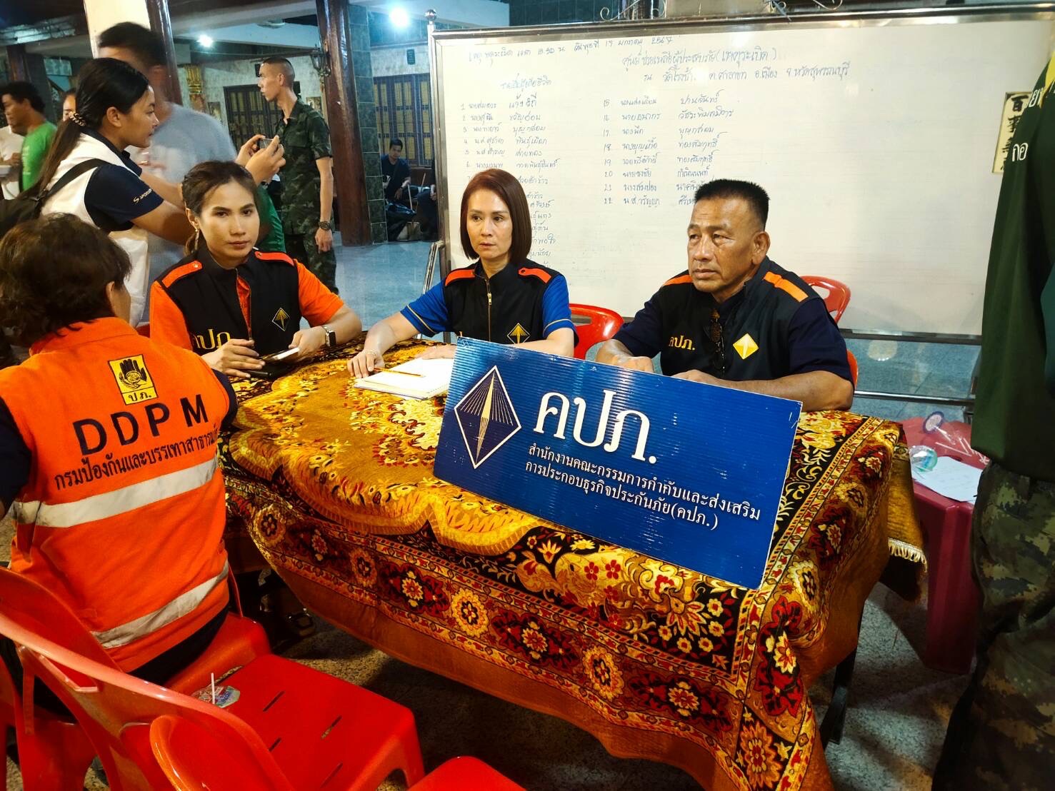 19 มกราคม 2567 : จากกรณีเกิดเหตุโรงงานพลุระเบิดเมื่อวันที่ 17 มกราคม 2567 ส่งผลทำให้มีผู้เสียชีวิต จำนวน 23 ราย บ้านเรือนประชาชน รถยนต์ และทรัพย์สินได้รับความเสียหายเป็นจำนวนมาก สายคุ้มครองสิทธิประโยชน์ สายส่งเสริมและประกันภัยภูมิภาค สำนักงาน คปภ. ภาค 7 (นครปฐม) และสำนักงาน คปภ. จังหวัดสุพรรณบุรี ลงพื้นที่และจัดตั้งศูนย์เฉพาะกิจช่วยเหลือด้านประกันภัย ภายในวัดโรงช้าง ตำบลศาลาขาว อำเภอเมือง จังหวัดสุพรรณบุรี