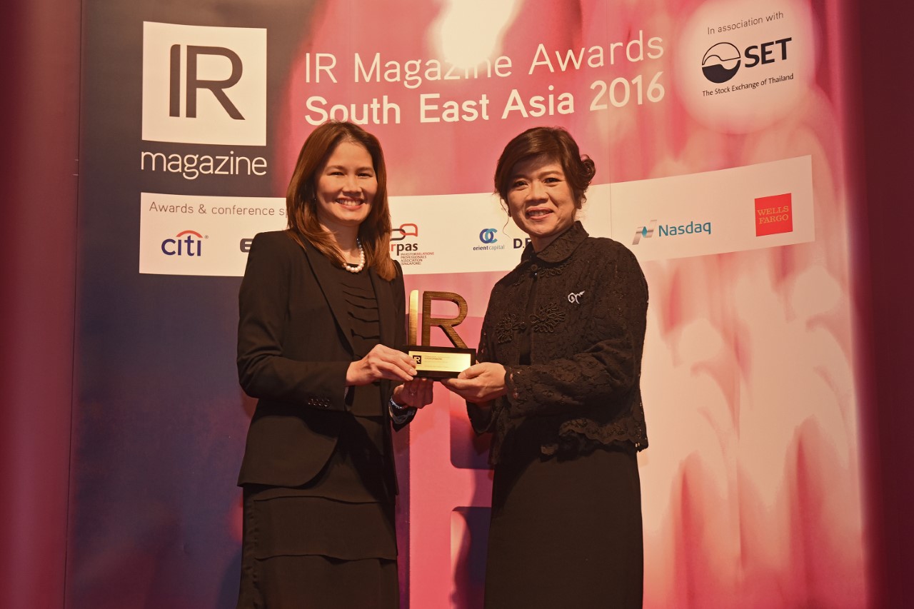 4 มกราคม 2559 : มาริสา วัตถพาณิชย์ ผู้ช่วยกรรมการผู้จัดการ ธนาคารกสิกรไทย เป็นผู้แทนธนาคาร รับมอบรางวัลยอดเยี่ยมด้านงานนักลงทุนสัมพันธ์ จำนวน 6 รางวัล ได้แก่ Best overall investor relations (large cap), Best investor relations in Thailand, Best investor relations officer, Best investor relations in Financial sector, Best use of technology และ Best sustainability Practice โดยมี เกศรา มัญชุศรี กรรมการและผู้จัดการ ตลาดหลักทรัพย์แห่งประเทศไทย เป็นผู้มอบ ในงาน IR Magazine Awards – South East Asia 2016 ณ โรงแรมพลาซ่า แอทธินี กรุงเทพฯ เมื่อเร็ว ๆ นี้ ![]()