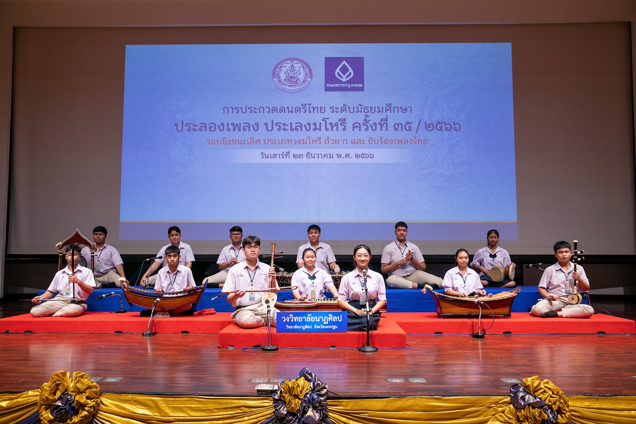 สำหรับการประกวดดนตรีไทย ประเภทวงมโหรี ระดับมัธยมศึกษา ในโครงการ “ประลองเพลง ประเลงมโหรี” เกิดขึ้นจากพระราชปรารภของสมเด็จพระกนิษฐาธิราชเจ้า กรมสมเด็จพระเทพรัตนราชสุดาฯ สยามบรมราชกุมารี ด้วยพระราชประสงค์ที่จะส่งเสริมให้เยาวชนที่สนใจดนตรีไทย ได้มีความเข้าใจและพัฒนาทักษะการบรรเลงดนตรีไทย ประเภทวงมโหรีได้อย่างถูกต้องตามแบบแผนที่คีตกวีและบุรพาจารย์ได้สร้างสรรค์ไว้ ซึ่งจะส่งผลให้ศิลปะการบรรเลงดนตรีแขนงนี้ได้รับการสืบสานต่อไป การประกวดตลอดระยะเวลาเกือบ 40 ปีที่ผ่านมา มีเยาวชนที่ผ่านเวทีการประกวด “ประลองเพลง ประเลงมโหรี” เป็นจำนวนนับหมื่นคน นับเป็นการต่อยอดความเป็น “เพื่อนคู่คิด” ในทุกมิติ ส่งผลให้เกิดบุคลากรที่มีบทบาทสำคัญในแวดวงดนตรีไทย ทั้งศิลปิน ผู้เชี่ยวชาญและนักวิชาการในสถาบันการศึกษาและส่วนราชการที่ส่งเสริมหรือมีภารกิจเกี่ยวข้องกับกิจการดนตรีและนาฏศิลป์ไทย