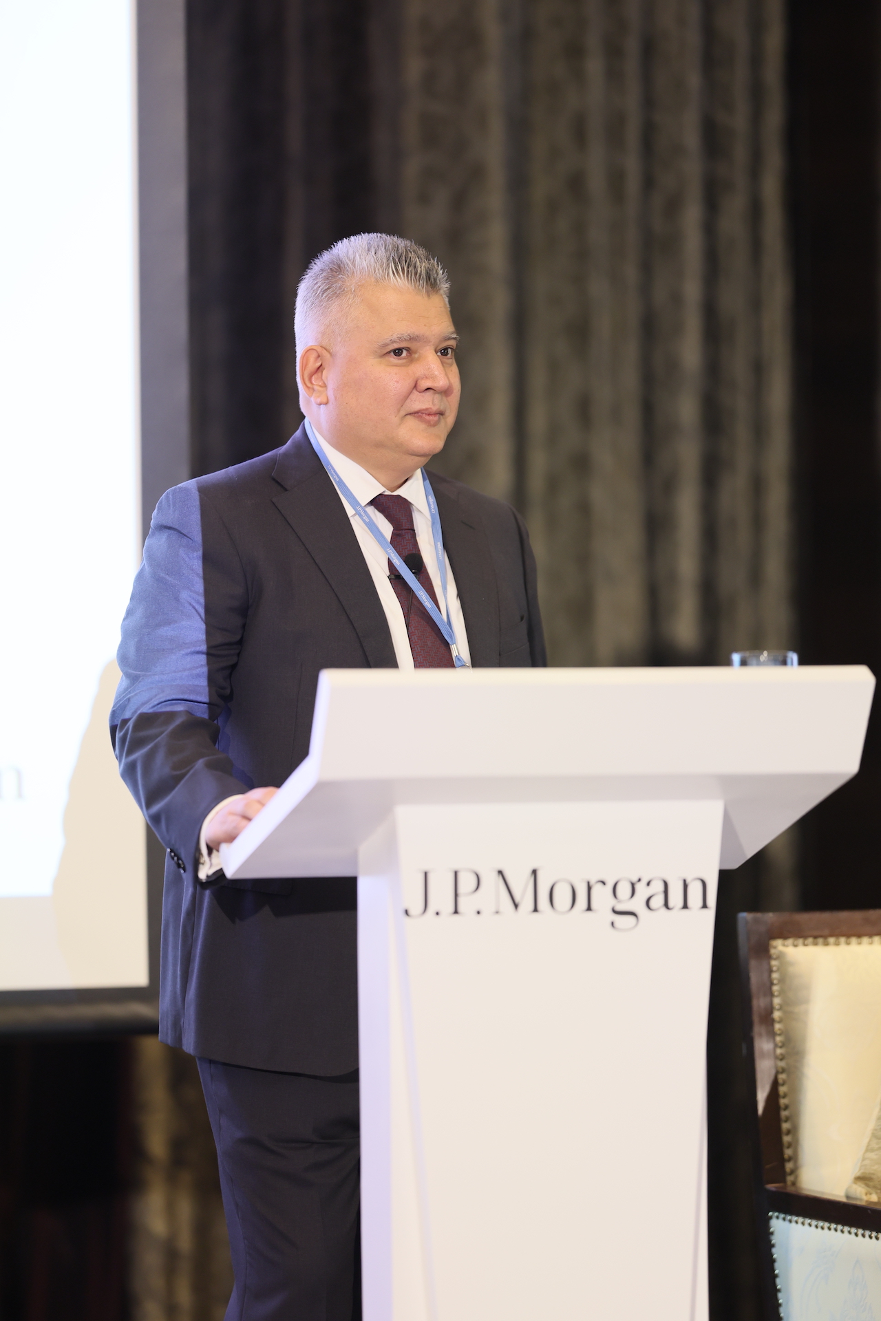 นายมาร์โค สุจริตกุล เจ้าหน้าที่บริหารอาวุโสประจำประเทศไทยของเจ. พี. มอร์แกน กล่าวเปิดงานประจำปีของธนาคารจัดขึ้นที่กรุงเทพฯ เข้าร่วมโดยหน่วยงานภาครัฐ นักลงทุน และบริษัทต่าง ๆ