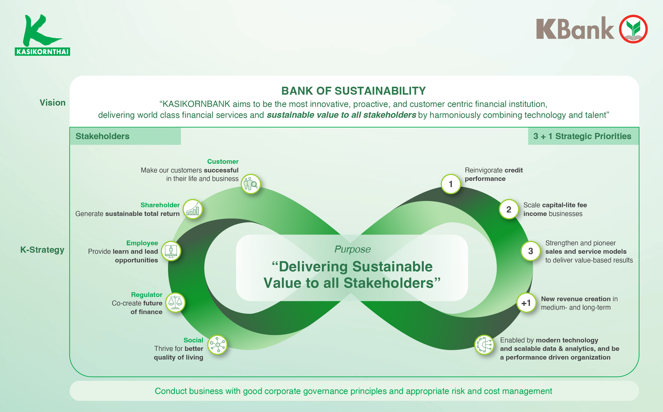 นางสาวขัตติยา กล่าวตอนท้ายว่า ธนาคารกสิกรไทยเชื่อมั่นว่า การดำเนินงานบนหลักการเป็นธนาคารแห่งความยั่งยืน ภายใต้ยุทธศาสตร์ 3+1 ที่วางไว้ จะทำให้ธนาคารสามารถตอบสนองต่อบริบทที่เกิดขึ้นได้อย่างทันท่วงทีและสมดุล เสริมสร้างรากฐานธุรกิจที่แข็งแกร่ง นำเสนอบริการคุณภาพที่ตรงใจลูกค้าอยู่เสมอ ควบคู่กับการส่งเสริมการเติบโตและพัฒนาศักยภาพของพนักงานในองค์กร และคาดว่าจะสามารถบรรลุเป้าหมายสร้างอัตราผลตอบแทนจากส่วนของผู้ถือหุ้น (ROE) เป็นเลข 2 หลัก ได้ภายในปี 2569 พร้อมส่งมอบผลตอบแทนที่ยั่งยืนแก่ผู้มีส่วนได้เสียทุกฝ่ายตามความมุ่งหมาย และนำพาเศรษฐกิจไทยเดินหน้าไปด้วยกัน