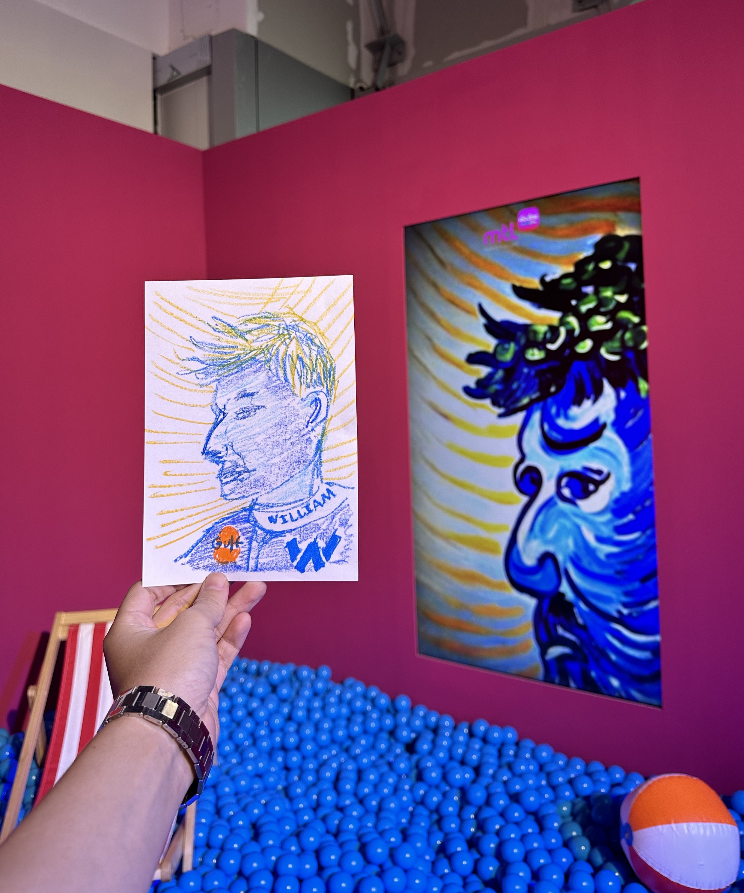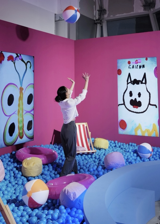 พร้อมสแกนคิวอาร์โค้ดเพื่อบันทึกภาพ และร่วมแชร์ผลงาน ผ่านจอแอลอีดีภายในงาน โดยมี AI ช่วยเสริมจินตนาการรูปวาดของผู้เข้าร่วมให้ออกมาเป็นผลงานศิลปะชิ้นพิเศษ นอกจากนั้นภายในงานนิทรรศการผู้เข้าร่วมงานจะได้พบกับมุมถ่ายรูป โดยบริษัทฯ ได้จำลองสถานที่แห่งความสุข สระน้ำ (บ่อลูกบอล) เก้าอี้ผ้าใบ พร้อมทิวทัศน์ที่รายล้อมไปด้วยหน้าต่างในมิติจินตนาการ