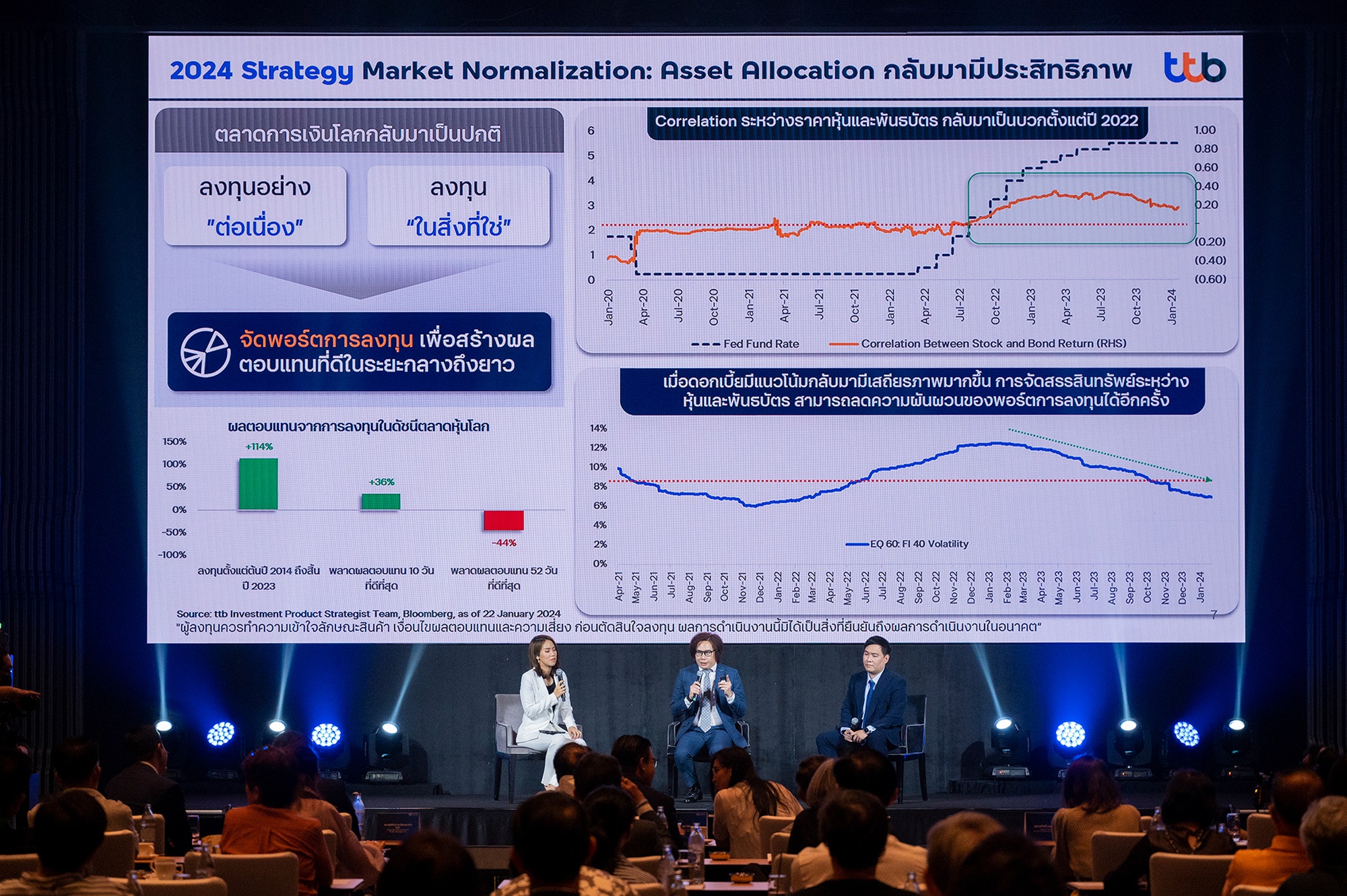 การสัมมนา “ttb investment outlook 2024” ในครั้งนี้ ทีทีบี ได้เชิญผู้เชี่ยวชาญมาแนะนำในเรื่องของการลงทุน เจาะจุดเด่น 4 ธีมการลงทุนแห่งความมั่นคงทางการเงิน รวมไปถึงการเปิดเทรนด์เทคโนโลยีใหม่ ซึ่งนักลงทุนสามารถนำไปใช้ไปประกอบการตัดสินใจในพอร์ตการลงทุนของตนเองได้