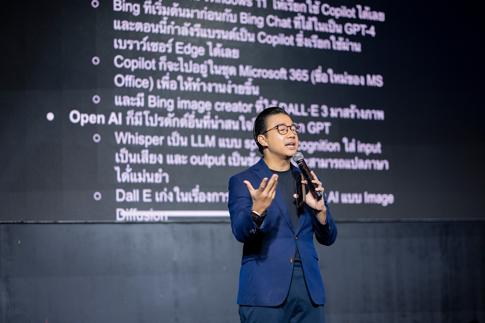 นายพงศ์สุข หิรัญพฤกษ์ ประธานกรรมการบริหารบริษัท โชว์ไร้ขีด จำกัด ผู้ผลิตสื่อ Beartai เผยว่าปัจจุบันมีหลายค่ายที่หันมาพัฒนาเทคโนโลยี เพื่อรองรับการเติบโตของ AI ไม่ว่าจะเป็น Google, IBM, Microsoft Adobe, NVIDIA, Samsung ฯลฯ โดยมีการพัฒนาสารพัดเทคโนโลยีต่าง ๆ ไม่ว่าจะเป็นการสร้างภาพเสมือนจริงด้วย AI การสร้างภาพให้ได้คอนเทนต์แปลกใหม่ แต่สุดท้ายแล้วสิ่งที่อยากฝากคือ หลายคนกลัวว่า AI จะเข้ามาแทนมนุษย์ แต่ในความจริงแล้ว AI เข้ามาเป็นผู้ช่วยลดระยะเวลาในการทำงานให้เรา จากเดิมใช้เวลา 3-5 วัน AI ช่วยลดระยะเวลาให้เสร็จภายในเพียงแค่หลักนาที ซึ่งไม่ต้องกลัว AI แต่ให้กลัวคนที่ใช้ AI และ “จงกลัวการไม่ลงทุนใน AI”