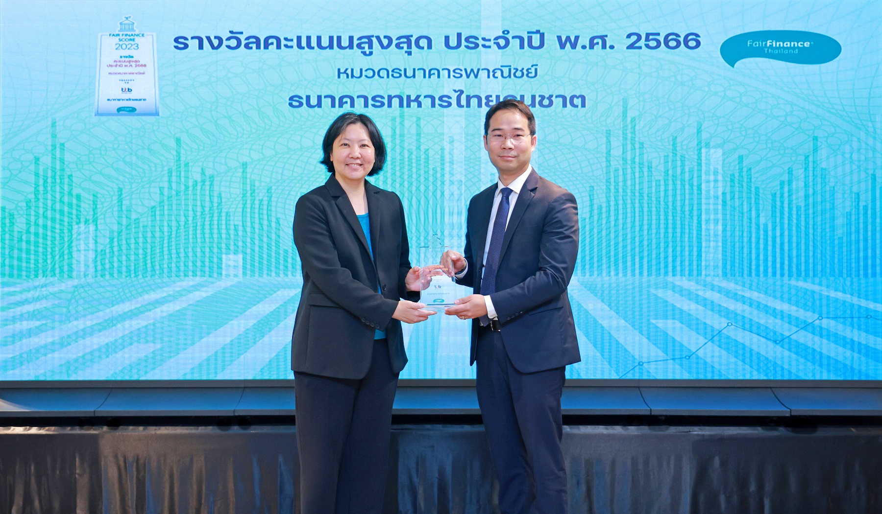 โดยมี นริศ อารักษ์สกุลวงศ์ ประธานกลุ่มกลยุทธ์องค์กรและดิจิทัล ทีเอ็มบีธนชาต เป็นผู้รับมอบรางวัลจากสฤณี อาชวานันทกุล หัวหน้าคณะวิ จัย แนวร่วมการเงินที่เป็นธรรมประเทศไทย และถือเป็นอีกหนึ่งรางวัลแห่งความภาคภูมิใจของธนาคารในการผลักดันให้ทุกภาคส่วนในองค์กรร่วมกันมุ่งมั่นสร้างการเติบโตที่ยั่งยืนอย่างสมดุลในทุกมิติ ตามกรอบ B+ESG ผสานธุรกิจและความยั่งยืนเป็นเนื้อเดียวกัน ณ โรงแรม S31 Sukhumvit Hotel เมื่อเร็วๆ นี้