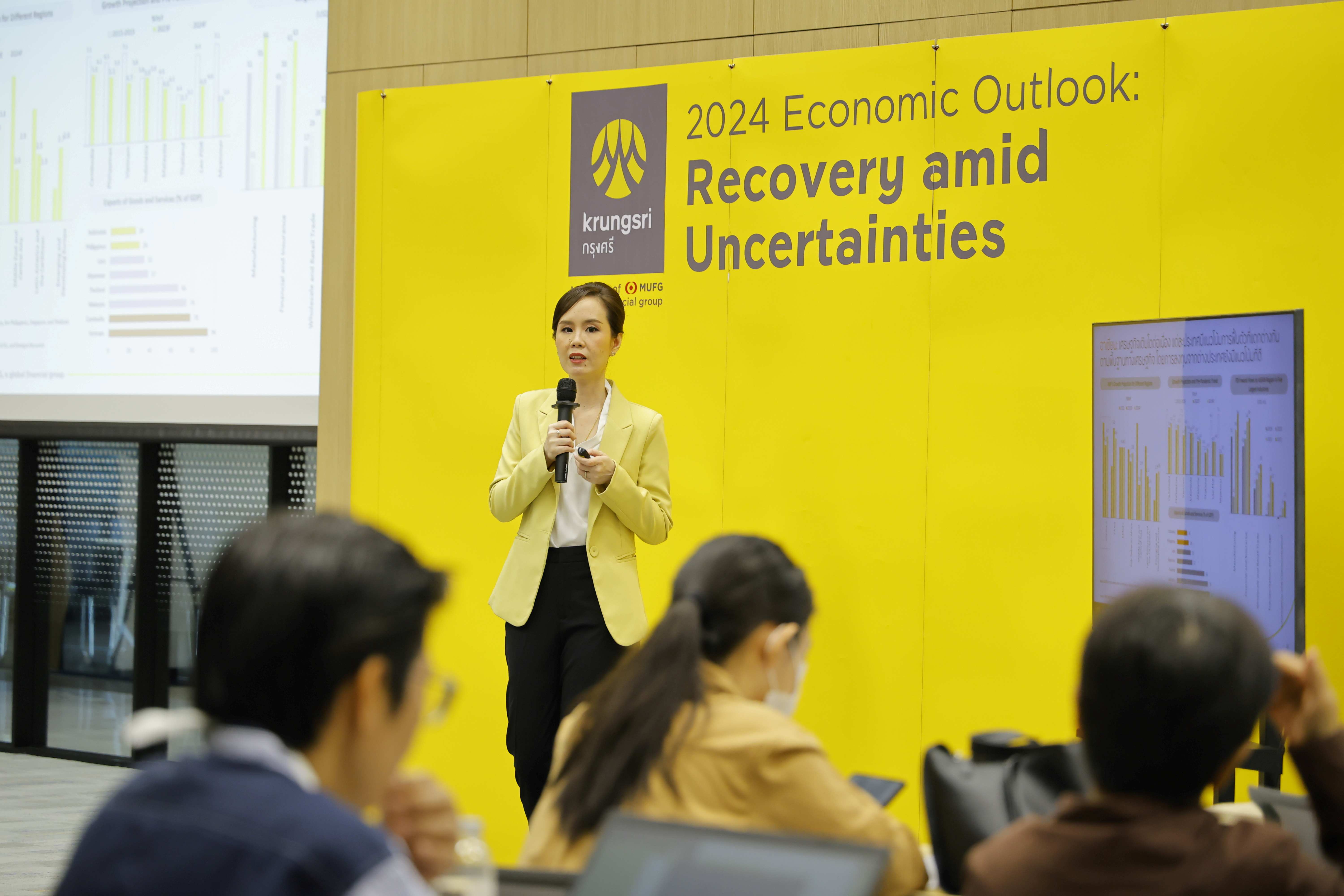 กรุงเทพฯ, 23 กุมภาพันธ์ 2567 : วิจัยกรุงศรี โดย ดร.พิมพ์นารา หิรัญกสิ หัวหน้าทีมวิจัยเศรษฐกิจ ธนาคารกรุงศรีอยุธยา จำกัด (มหาชน) แถลงภาพรวมเศรษฐกิจโลกในปี 2567 มีแนวโน้มเติบโตต่ำใกล้เคียงกับปีก่อนที่ 3.1% พร้อมปรับคาดการณ์การขยายตัวของเศรษฐกิจไทยอยู่ที่ 2.7% ขณะที่ภาพรวมเศรษฐกิจในกลุ่มอาเซียน-5 ยังเติบโตดีต่อเนื่องอยู่ที่ 4.7%