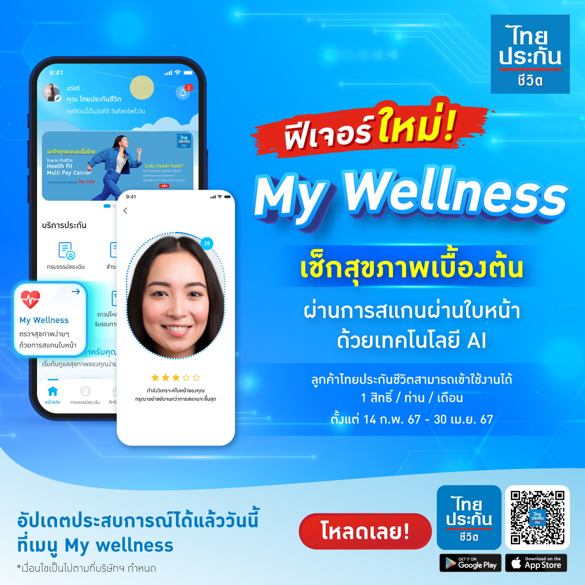 ที่ผ่านมาบริษัทฯ ริเริ่มแอปพลิเคชัน ไทยประกันชีวิต ซึ่งเป็นแอปพลิเคชันที่ช่วยอำนวยความสะดวกให้กับลูกค้าในการเข้าถึงข้อมูลกรมธรรม์ ทำธุรกรรมด้านการประกันชีวิตได้ง่าย สะดวกรวดเร็ว รวมถึงได้รับสิทธิพิเศษมากมายที่ตอบความต้องการในทุกไลฟ์สไตล์ผ่านไทยประกันชีวิต Privilege และเพื่อเติมเต็มการใช้ชีวิตอย่างครบรอบด้านให้กับลูกค้า บริษัทฯ จึงได้พัฒนาแอปพลิเคชัน ไทยประกันชีวิต ให้เป็นแอปพลิเคชันที่ส่งมอบคุณค่าและประสบการณ์ที่ดีให้กับลูกค้า ด้วยการพัฒนาฟีเจอร์ใหม่ My Wellness Vital Scan บริการเช็กสุขภาพเบื้องต้นผ่านการสแกนใบหน้าด้วยเทคโนโลยี AI สำหรับลูกค้าที่มีอายุตั้งแต่ 13 ปีขึ้นไป