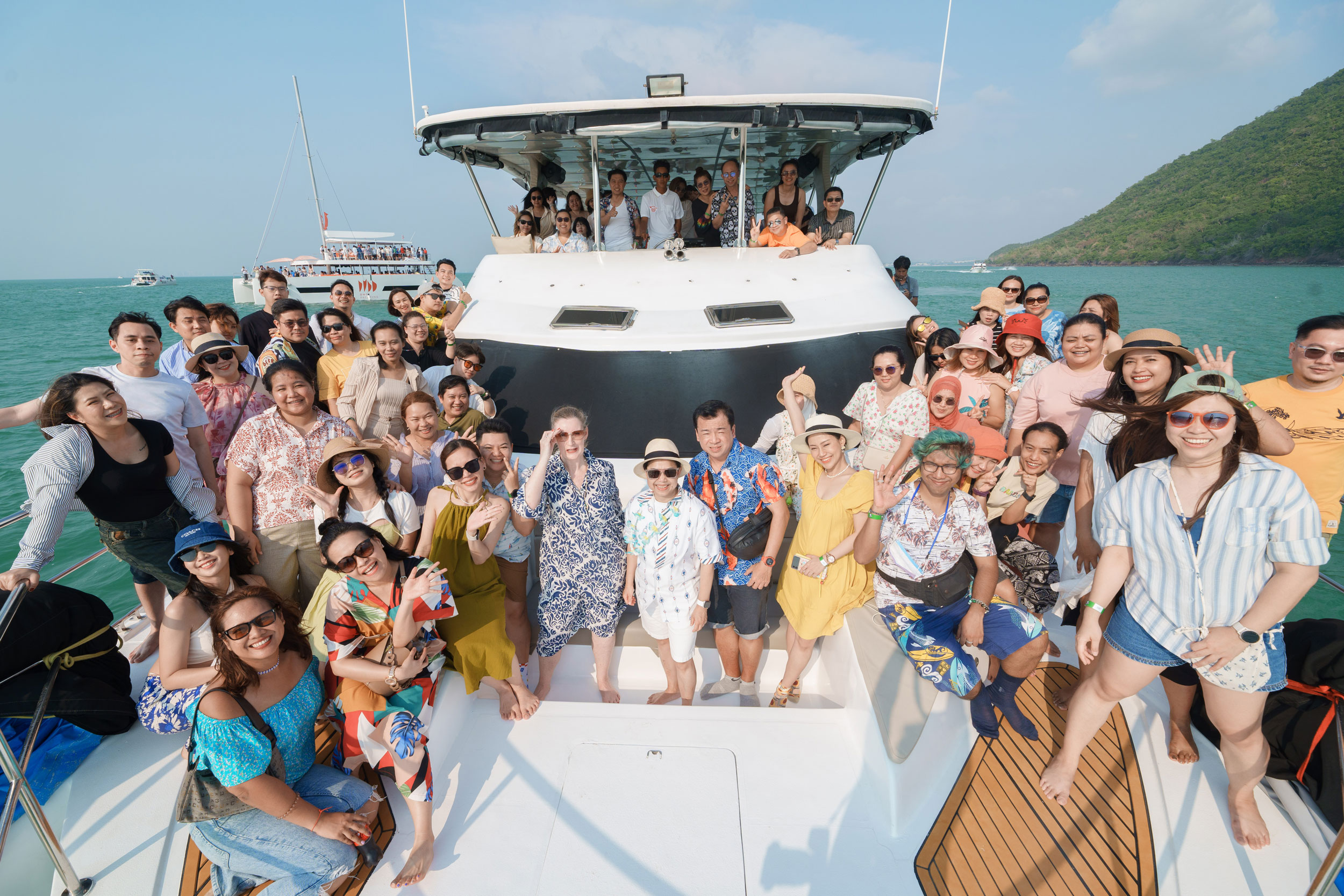 7 มีนาคม 2567 : บมจ.กรุงไทย-แอกซ่า ประกันชีวิต นำโดย คุณแซลลี่ โอฮาร่า ประธานเจ้าหน้าที่บริหาร (คนที่ 8 จากซ้าย) และคุณบุปผาวดี โอวรารินท์ ประธานเจ้าหน้าที่บริหาร ฝ่ายทรัพยากรบุคคลและภาพลักษณ์องค์กรและการสื่อสารองค์กร (คนที่ 9 จากซ้าย) จัดกิจกรรม 2024 KTAXA Staff Outing ภายใต้ธีม “Aloha Paradise by KTAXA” ด้วยการพาพนักงานไปรับลมทะเลและระเบิดความมันส์กันแบบสุดเหวี่ยงผ่านกิจกรรมมากมาย อาทิ ล่องเรือยอร์ชสุดหรูที่มีพนักงานไปร่วมดื่มด่ำบรรยากาศสนุกๆ กลางทะเล กิจกรรม Know You Can Awards โชว์สุดว้าวจากพนักงาน กิจกรรม Aloha Treasure Hunting ที่เปิดโอกาสให้นักล่าสมบัติได้คว้ารางวัลติดไม้ติดมือก่อนจะจับฉลากใหญ่