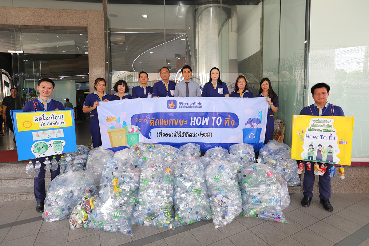 27 มีนาคม 2567 : อมร ทองธิว กรรมการผู้จัดการ บริษัท วิริยะประกันภัย จำกัด (มหาชน) นำทีมคณะผู้บริหารและกลุ่มวิริยะจิตอาสา ร่วมส่งมอบบรรจุภัณฑ์พลาสติกพร้อมรีไซเคิลที่ไม่ใช้แล้วประเภท ขวดน้ำ แก้วน้ำ กล่องอาหาร รวมไปถึง ขวดแก้ว โลหะ อะลูมิเนียม และกระดาษ ที่ได้จากโครงการคัดแยกขยะในองค์กร ภายใต้ ‘กิจกรรม HOW TO ทิ้ง (ทิ้งอย่างไรให้เกิดประโยชน์)’ บริจาคให้แก่ วัดจากแดง อำเภอพระประแดง จังหวัดสมุทรปราการ เพื่อนำขยะรีไซเคิลเข้าสู่กระบวนการแปรรูปเป็นเส้นใยโดยผ่านนวัตกรรมและถักทอเป็นผ้าไตรจีวรสำหรับพระสงฆ์ในลำดับถัดไป ณ ชั้น G อาคาร RS Tower ถนนรัชดาภิเษก เขตดินแดง กรุงเทพมหานคร
