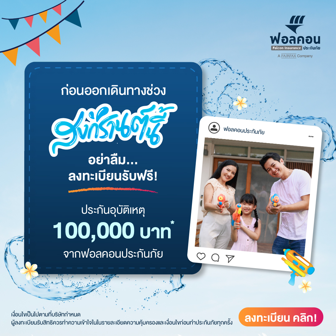 #แจกฟรี #ประกันอุบัติเหตุ #ฟอลคอนประกันภัย #FalconInsurance #สงกรานต์ #Songkran