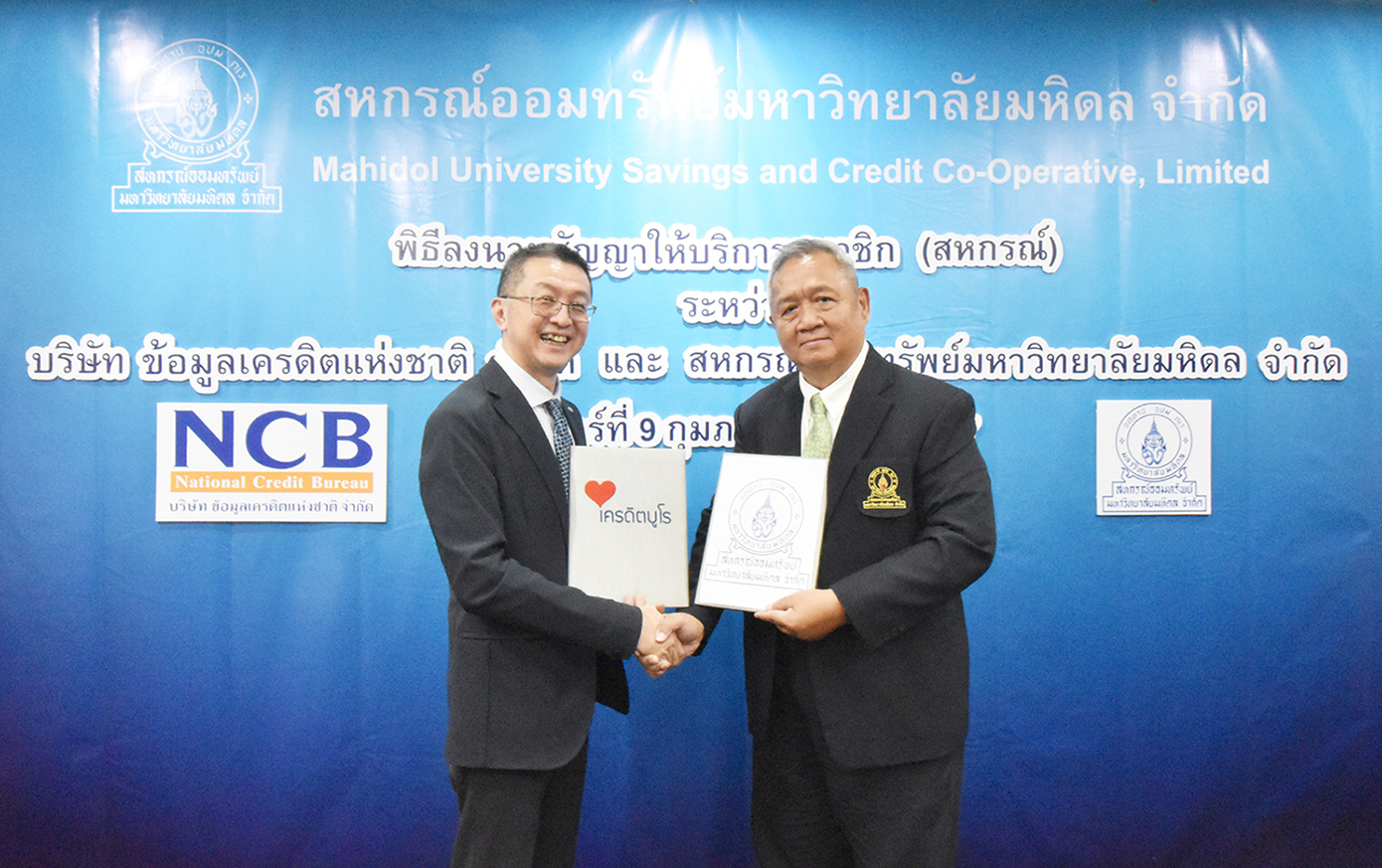 ผู้บริหารของทั้ง 2 หน่วยงาน ได้แก่ โดย นพ.วิโรจน์ จงกลวัฒนา ประธานกรรมการ สหกรณ์มหิดล และนายสุรพล โอภาสเสถียร ผู้จัดการใหญ่ เครดิตบูโร ร่วมลงนามในสัญญาให้บริการสมาชิกสหกรณ์ออมทรัพย์