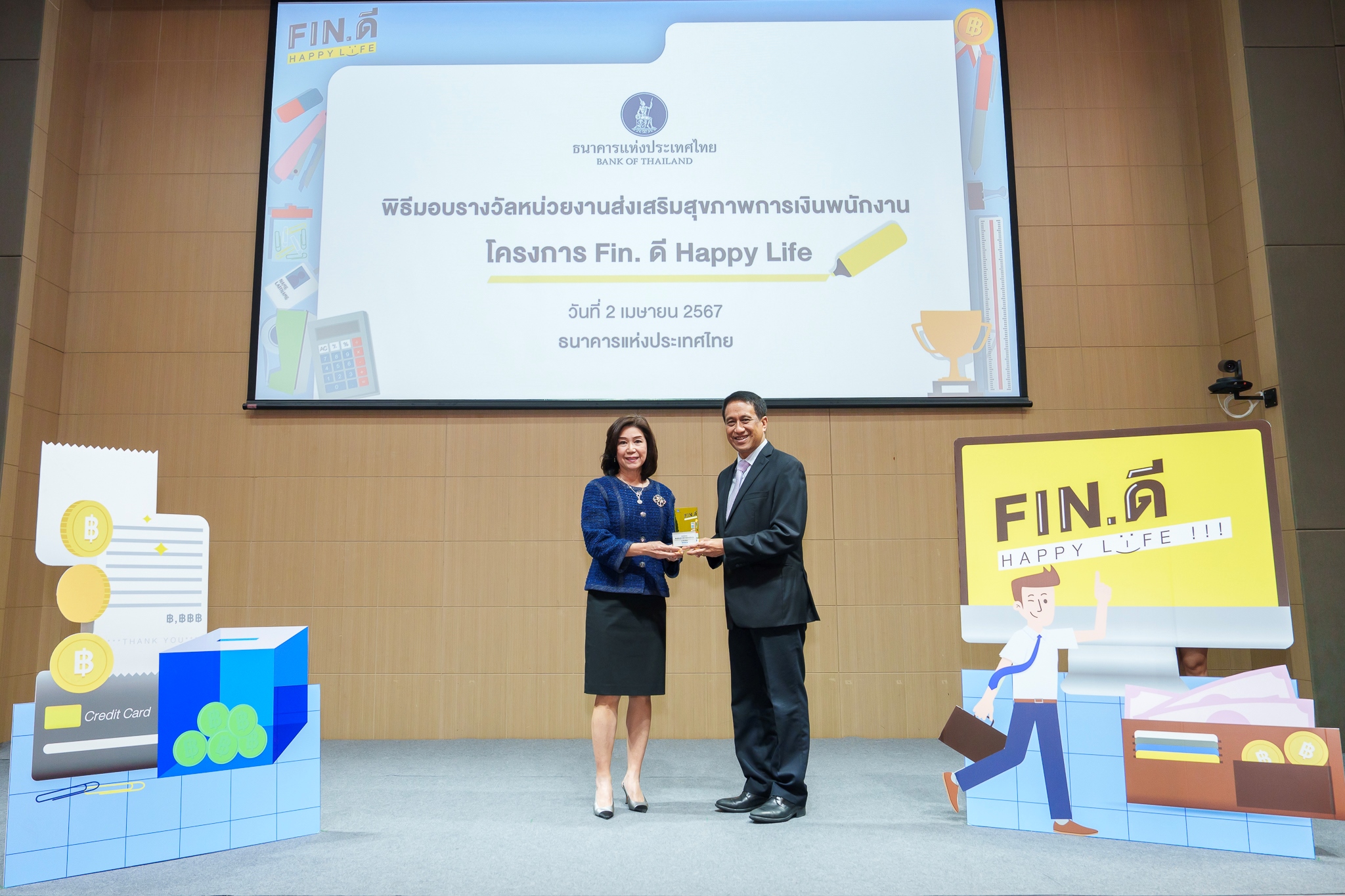 4 เมษายน 2567 : คุณนุสรา (อัสสกุล) บัญญัติปิยพจน์ ประธานเจ้าหน้าที่บริหารและกรรมการผู้จัดการ (CEO) บมจ.ไทยสมุทรประกันชีวิต รับรางวัล “หน่วยงานส่งเสริมสุขภาพการเงินพนักงาน ระดับดีเด่น (ระดับ 4 ดาว)” จาก คุณรณดล นุ่มนนท์ รองผู้ว่าการด้านเสถียรภาพสถาบันการเงิน ธนาคารแห่งประเทศไทย ภายใต้ โครงการ Fin. ดี Happy Life ประจำปี 2567