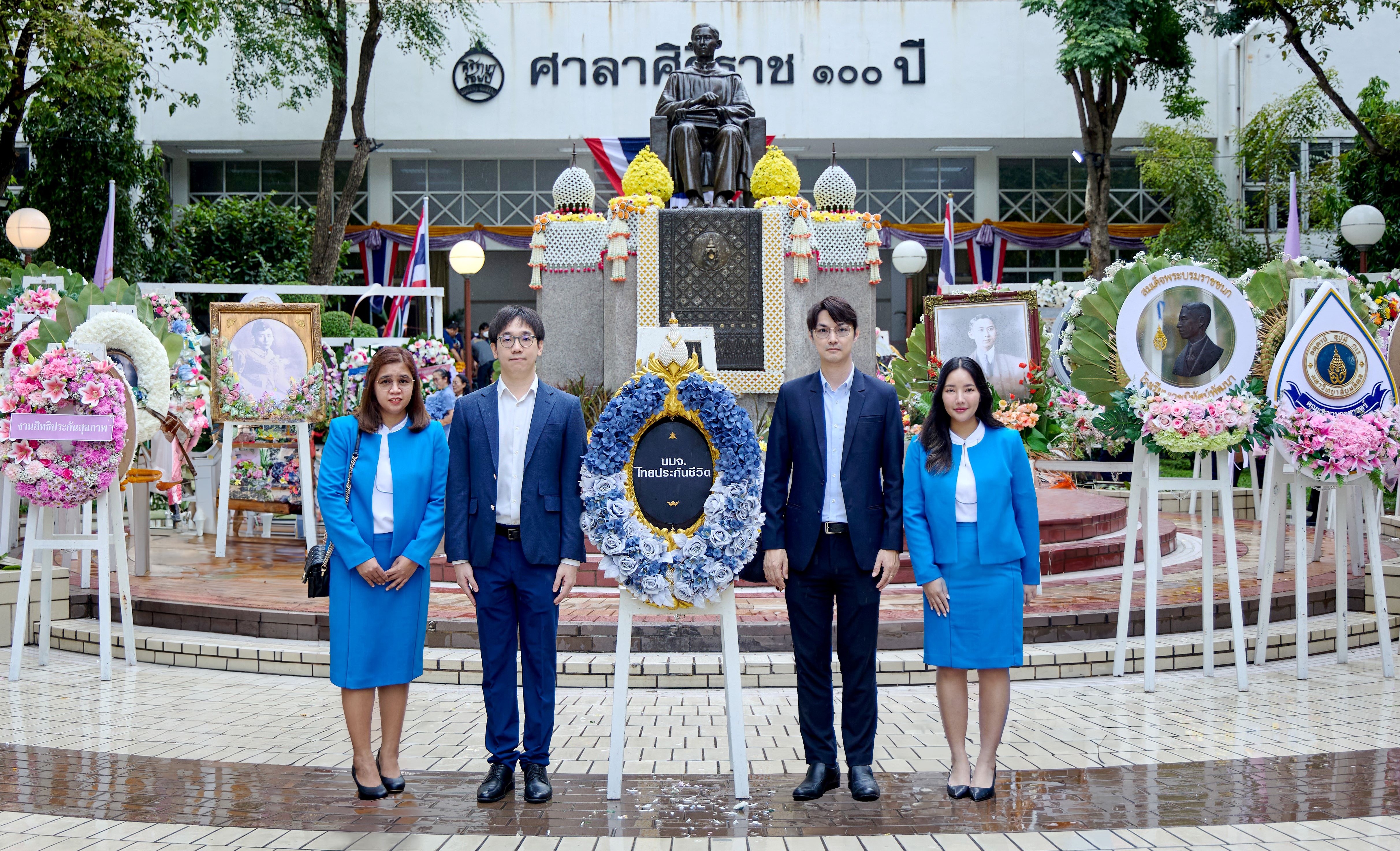 30 กันยายน 2567 : นายกฤต ไชยวรรณ ผู้ช่วยผู้อำนวยการสายงาน สายงานวินัยฝ่ายขาย (ที่ 2 จากซ้าย) บริษัท ไทยประกันชีวิต จำกัด (มหาชน) เป็นผู้แทนบริษัทฯ ร่วมพิธีวางพวงมาลาถวายราชสักการะพระราชานุสาวรีย์สมเด็จพระมหิตลาธิเบศร อดุลยเดชวิกรม พระบรมราชชนก “องค์บิดาแห่งการแพทย์แผนปัจจุบัน และการสาธารณสุขของไทย” เนื่องในวันมหิดล ประจำปี 2567 ณ ลานหน้าศาลาศิริราชร้อยปี โรงพยาบาลศิริราช