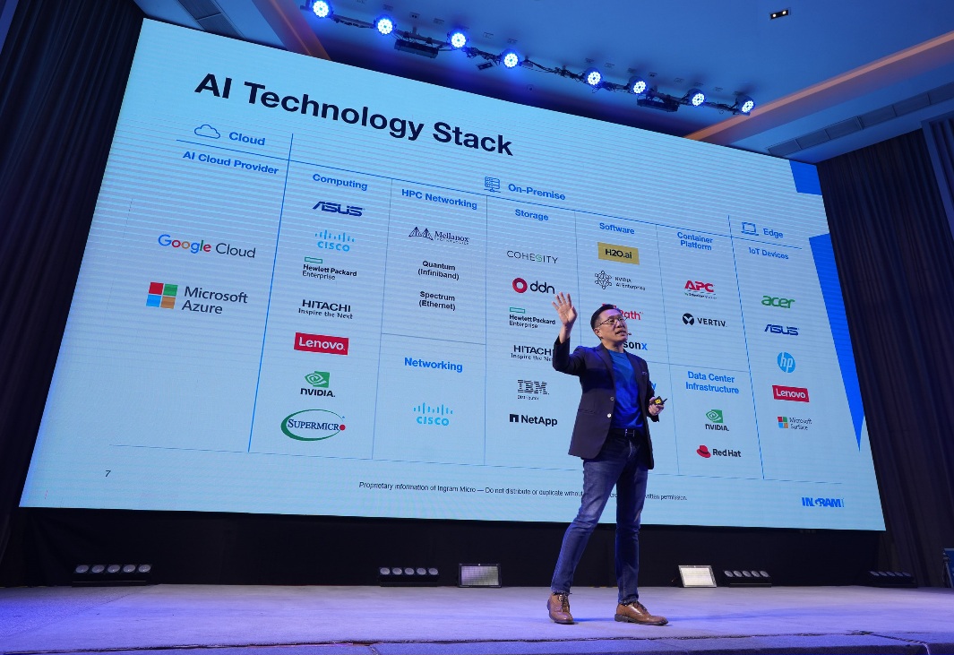 “อินแกรม ไมโคร ไม่เพียงเป็นเพียงผู้จัดจำหน่ายเทคโนโลยีเท่านั้น แต่ยังเป็นผู้ให้บริการโซลูชัน AI Stack แบบครบวงจร (End-to-End AI Solution) ในรูปแบบไฮบริด คลาวด์ (Hybrid Cloud) ประกอบด้วย ออน พรีมิส (On Premise) และ ออน คลาวด์ (On Cloud) และ ดาต้า เซ็นเตอร์ ที่ครอบคลุมทั้งฮาร์ดแวร์ ซอฟต์แวร์ และพร้อมผู้เชี่ยวชาญให้บริการที่ปรึกษา โดยมีทีมงาน AI Architecture เฉพาะทางที่มีความเชี่ยวชาญในการออกแบบและพัฒนาโซลูชัน AI ที่ตอบโจทย์ความต้องการเฉพาะของธุรกิจแต่ละราย ทำให้พันธมิตรทางธุรกิจสามารถนำเสนอโซลูชัน AI ที่ครบวงจรและตอบโจทย์ความต้องการของลูกค้าได้อย่างมีประสิทธิภาพ” นายพรเทพ กล่าว