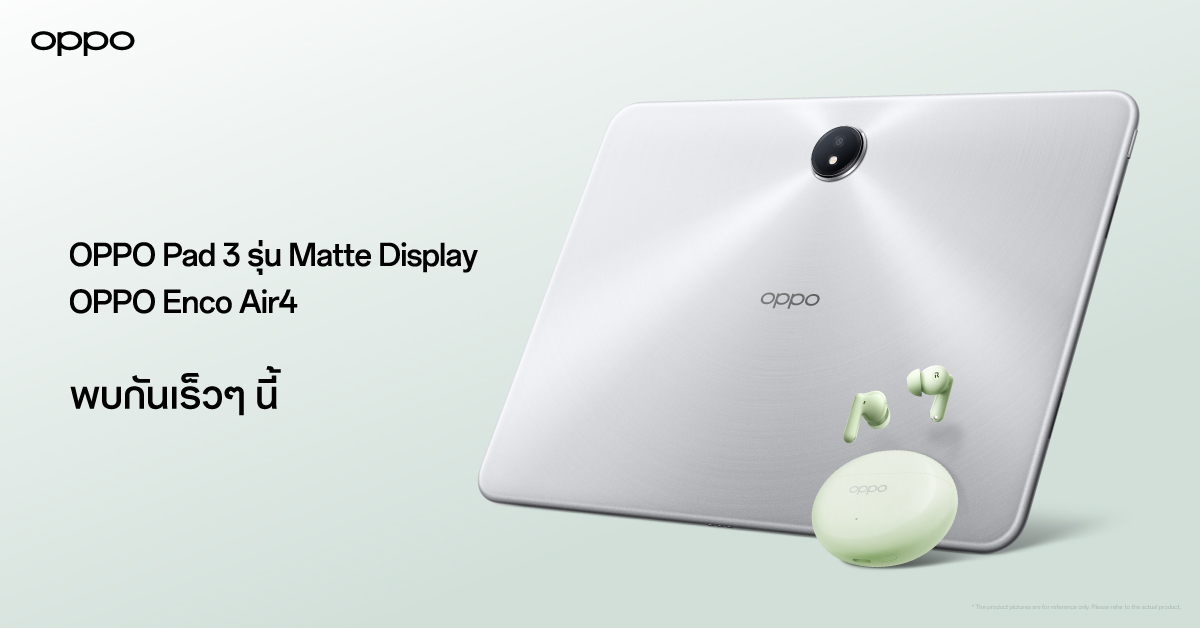 7 มกราคม 2568 : เตรียมพบกับ OPPO Pad 3 รุ่น Matte Display แท็บเล็ตตอบโจทย์ทุกการทำงานด้วยฟีเจอร์ AI และมาพร้อมกับ OPPO Enco Air4 หูฟังไร้สายสีใหม่ล่าสุด หลงใหลในทุกมิติเสียงด้วยเทคโนโลยีตัดเสียงรบกวนดีที่สุดในระดับเดียวกัน