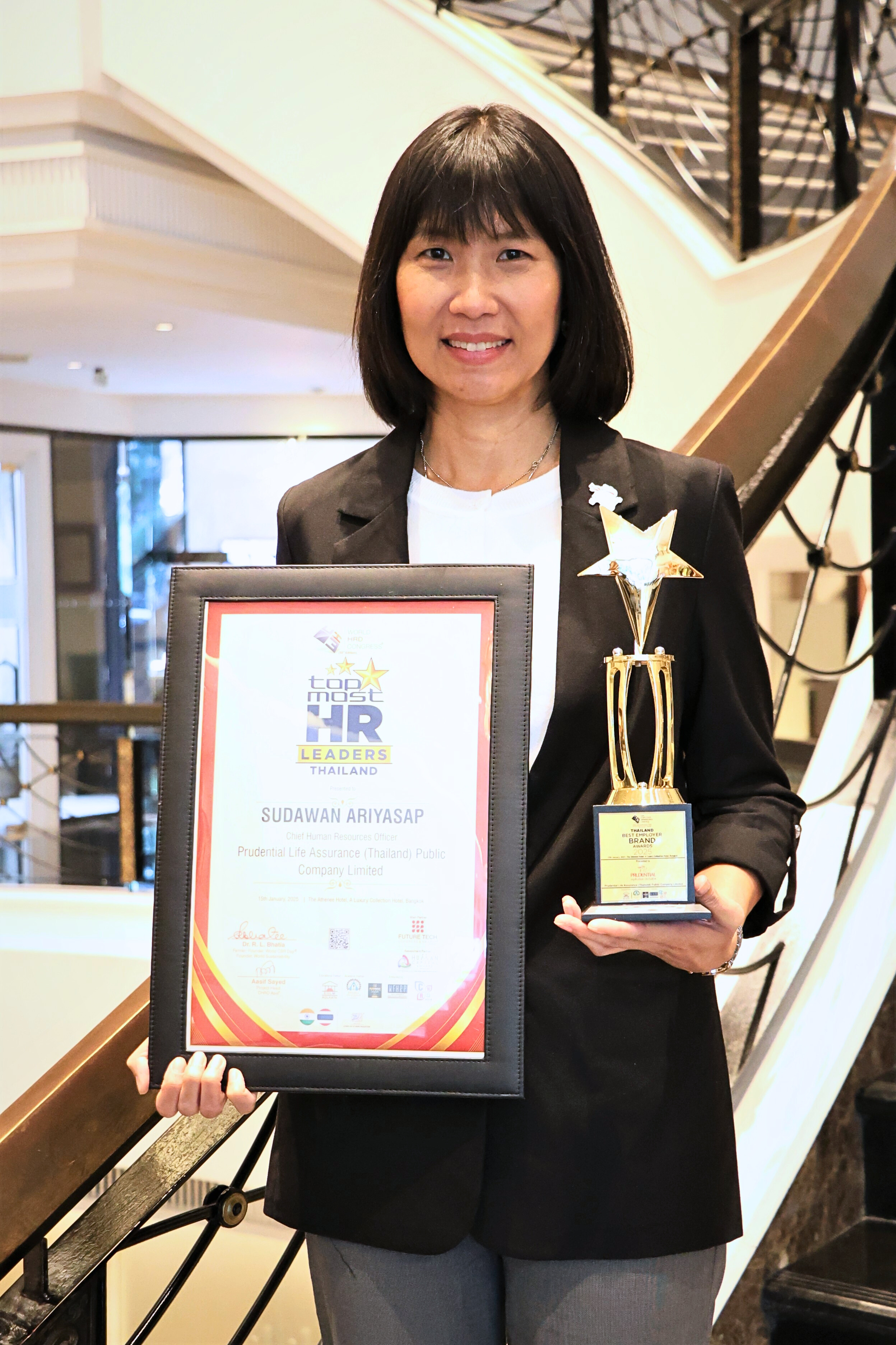 22 มกราคม 2568 : บริษัท พรูเด็นเชียล ประกันชีวิต (ประเทศไทย) จำกัด (มหาชน) หรือ พรูเด็นเชียล ประเทศไทย คว้า 2 รางวัลอันทรงเกียรติจากเวที Thailand Leadership Awards 2025 ซึ่งจัดโดย The Business Leader of the Year คือ “รางวัลสุดยอดนายจ้างระดับประเทศไทยปี 2025″ (Thailand’s Best Employer Brand Award 2025) ซึ่งพรูเด็นเชียลฯ สามารถคว้ารางวัลนี้เป็นปีที่ 2 ติดต่อกัน และ รางวัลผู้นำด้านทรัพยากรบุคคลดีเด่น – ประเทศไทย (Top Most HR Leader – Thailand) ถือเป็นการตอกย้ำความเป็นเลิศในการบริหารงานด้านทรัพยากรบุคคล นโยบาย และแนวทางปฏิบัติในด้านต่างๆ ตลอดจนการใช้การสื่อสารทางการตลาดอย่างมีประสิทธิผลเพื่อส่งเสริมการพัฒนาบุคลากรอย่างต่อเนื่อง รวมถึงการผลักดัน และส่งเสริมด้านสุขภาพ และความเป็นอยู่ที่ดี (Health & Wellbeing) โดยพิธีมอบรางวัลจัดขึ้นที่ โรงแรม ดิ แอทธินี โฮเทล แบงค็อก เมื่อเร็วๆ นี้