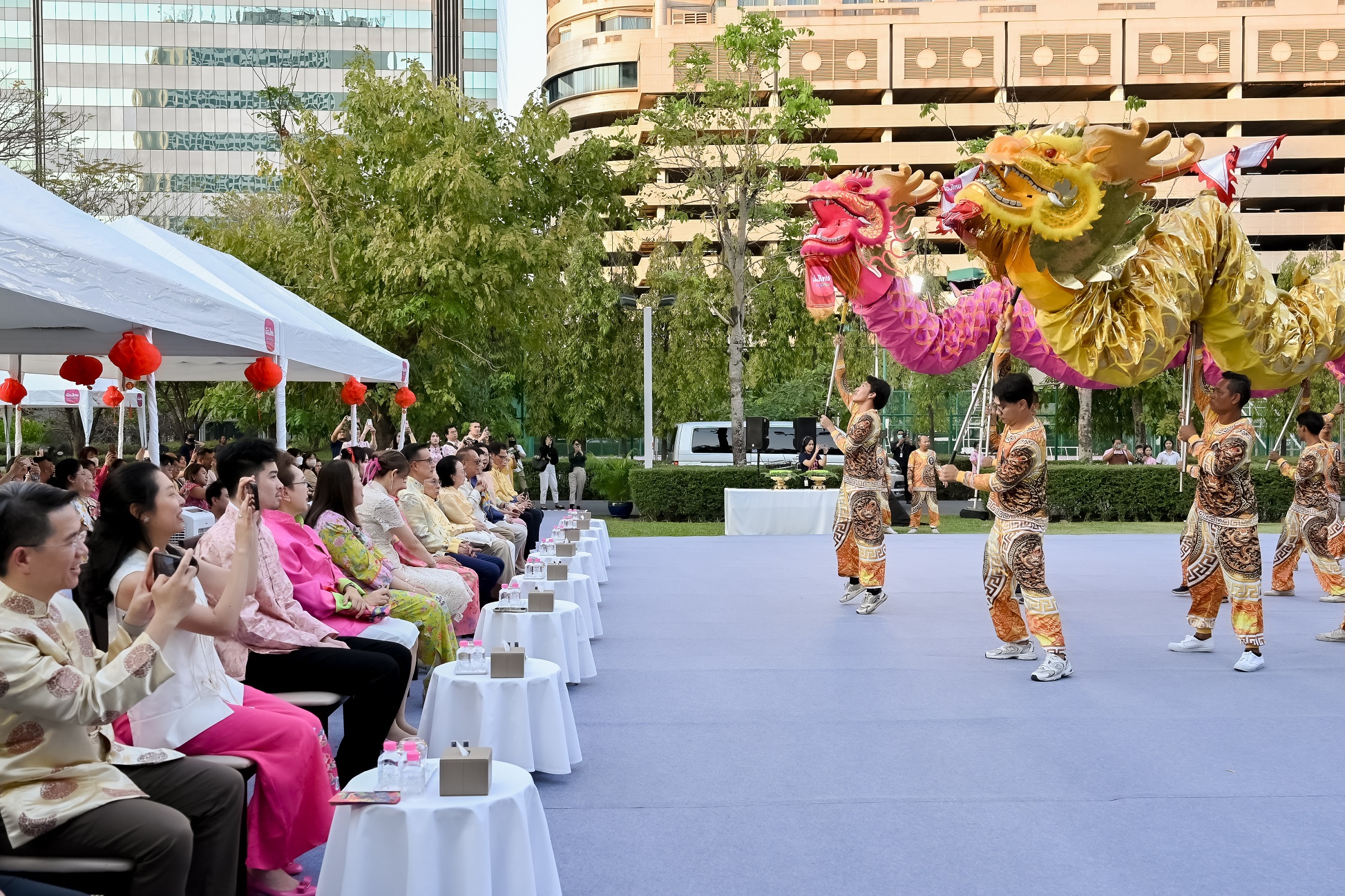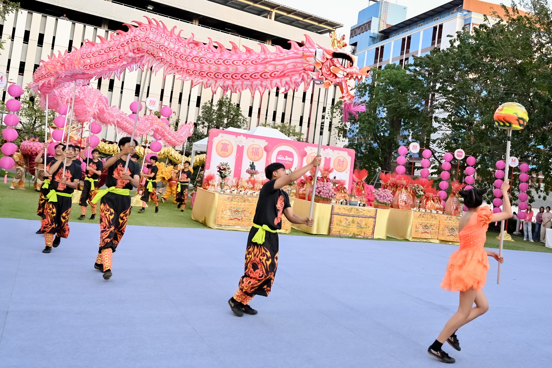 ทั้งนี้ ภายในงานเริ่มลำดับพิธีด้วยคณะผู้บริหารอัญเชิญองค์เทพมา ณ แท่นประทับ ถวายเครื่องสักการะพระโพธิสัตว์กวนอิม เทพเจ้ากวนอู และเทพเจ้ามังกรเขียว ตามด้วยคณะผู้บริหาร ผู้มีเกียรติร่วมงาน และพนักงาน ร่วมสักการะองค์เทพ การแสดงเชิดมังกรชมพูและสิงโต ปิดท้ายด้วยคณะผู้บริหาร ผู้มีเกียรติ และพนักงานร่วมพิธีลอดใต้ท้องมังกรชมพู