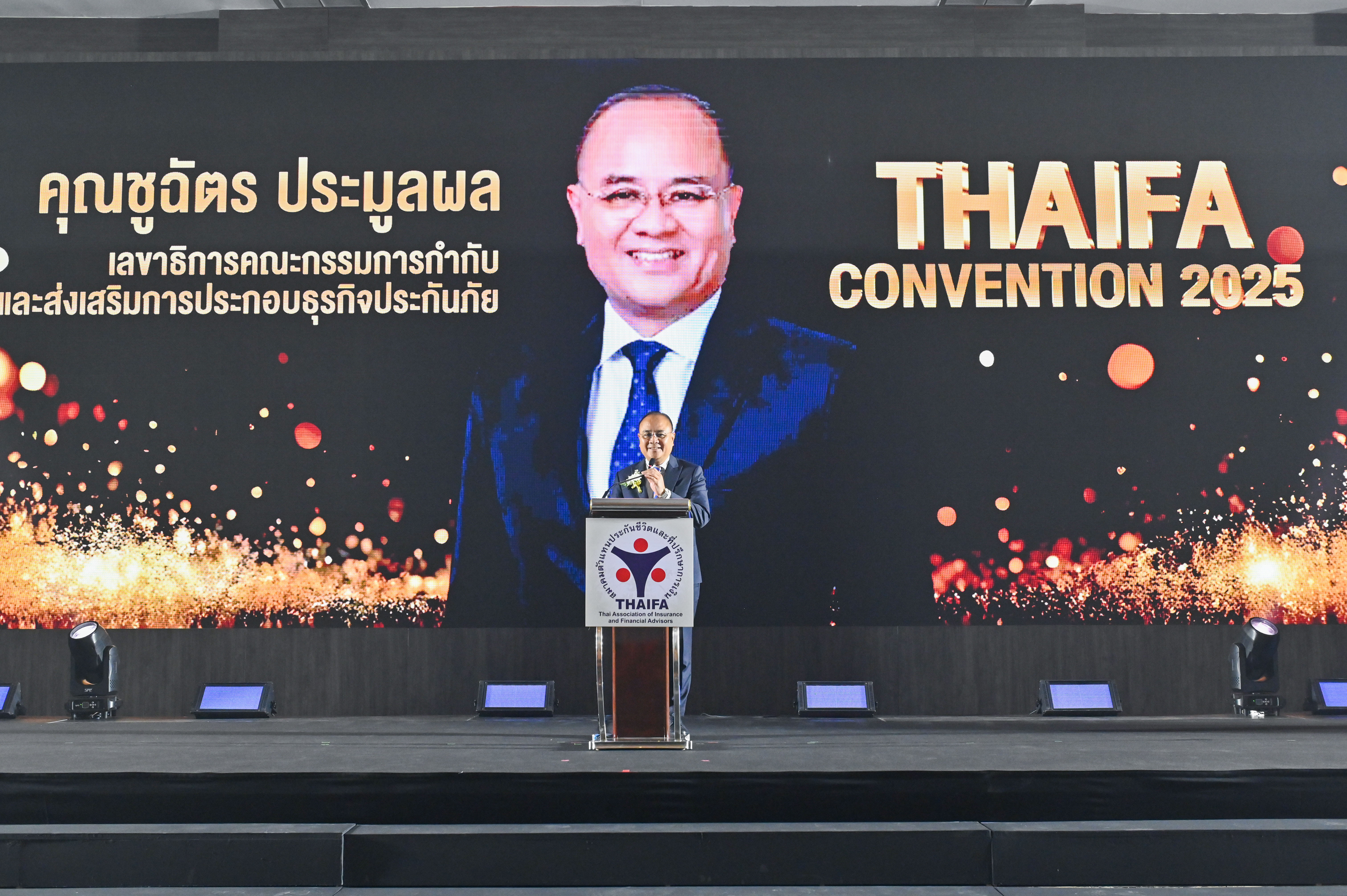 11 กรกฎาคม 2568 : นายชูฉัตร ประมูลผล เลขาธิการคณะกรรมการกำกับและส่งเสริมการประกอบธุรกิจประกันภัย (เลขาธิการ คปภ.) เป็นประธานเปิดงาน THAIFA CONVENTION 2025 งานสัมมนาวิชาการประจำปีที่รวมพลังของตัวแทนประกันชีวิตและที่ปรึกษาการเงินจากทั่วประเทศ ซึ่งจัดโดยสมาคมตัวแทนประกันชีวิตและที่ปรึกษาการเงิน (THAIFA) โดยปีนี้จัดขึ้นภายใต้แนวคิด “Crafting Image, Building Legacy – ภาพลักษณ์ สู่ ภาพพจน์”