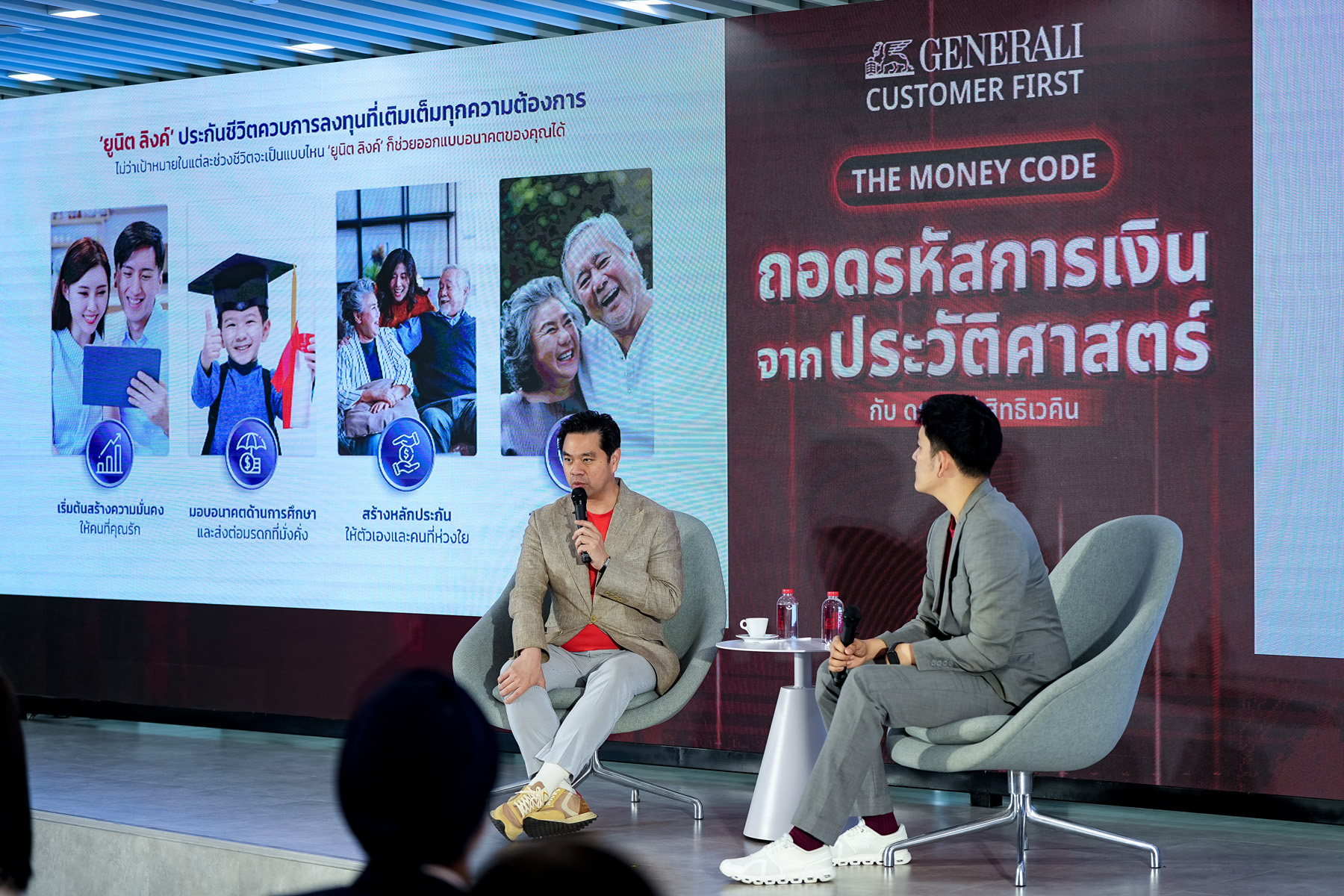15 กรกฎาคม 2568 : เจนเนอราลี่ ไทยแลนด์ จัดกิจกรรมสุดเอ็กซ์คลูซีฟ “The Money Code ถอดรหัสการเงินจากประวัติศาสตร์โลก” จากยุคหินถึงโลกดิจิทัลมนุษย์ปรับตัวอย่างไรให้รอดทางการเงิน เปิดมุมมองการวางแผนทางการเงินให้กับลูกค้าคนสำคัญของเจนเนอราลี่ ไทยแลนด์ และธนาคารเกียรตินาคินภัทร ผ่านการเรียนรู้เส้นทางวิวัฒนาการของเงินตั้งแต่ยุคหินจนถึงยุคดิจิทัล โดยได้รับเกียรติจาก 2 กูรูการเงินชื่อดัง ได้แก่