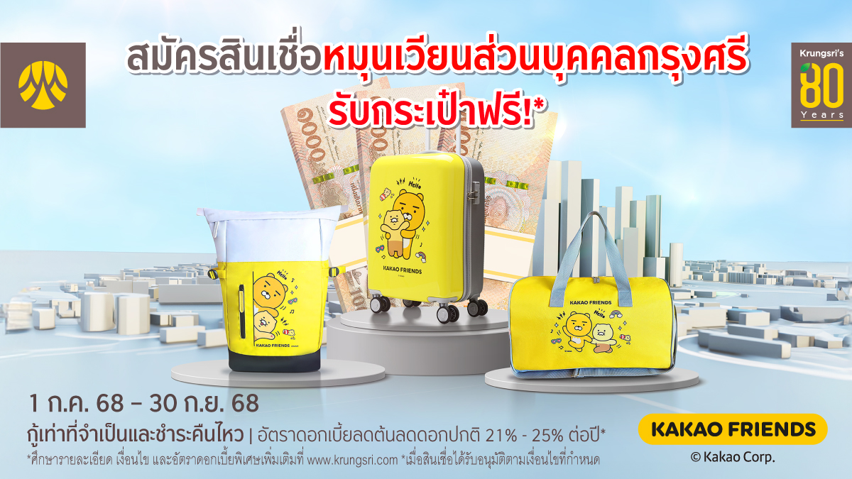 - ตั้งแต่ 1,000,000 บาทขึ้นไป จะได้รับกระเป๋าเดินทางล้อลากขนาด 20 นิ้ว Kakao Friends มูลค่า 5,290 บาท