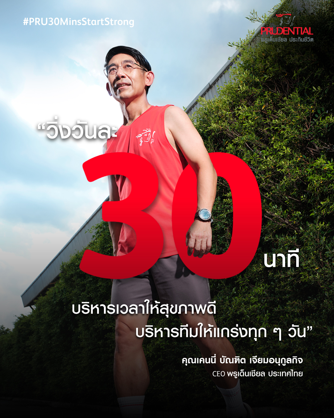 นายบัณฑิต เจียมอนุกูลกิจ ประธานเจ้าหน้าที่บริหาร พรูเด็นเชียล ประเทศไทย กล่าวว่า พลังของมนุษย์เริ่มต้นจากความเชื่อมั่นและการดูแลตัวเองก่อนเสมอ การที่เราเริ่มต้นเช้าวันใหม่ด้วยความแข็งแรง ไม่เพียงแต่จะส่งผลดีต่อร่างกาย แต่ยังเป็นการสร้างกรอบความคิด (mindset) ที่ดีและพร้อมรับมือกับทุกสิ่งไปตลอดทั้งวัน แคมเปญ #PRU30MinsStartStrong คือจุดเริ่มต้นเล็กๆ ที่อยากเชิญชวนให้ทุกคนมาสร้างการเปลี่ยนแปลงที่ยิ่งใหญ่ไปด้วยกัน เพราะสุขภาพที่ดีคือหลักประกันแรกของชีวิต รวมถึงปีนี้ถือว่ามีความพิเศษอย่างยิ่ง เนื่องจากเป็นปีแห่งการฉลองครบรอบ 30 ปีของการดำเนินธุรกิจในประเทศไทย จึงอยากเชิญชวนทุกคนหันมาขยับร่างกายวันละ 30 นาที โดยสามารถเริ่มต้นง่ายๆได้ทันที ไม่ว่าจะเป็น การเดิน วิ่งช้าๆ โยคะ หรือ แม้แต่การยืดเหยียดเบาๆ ก็สามารถสร้างความเปลี่ยนแปลงให้ร่างกายวันละนิดเพื่อมีสุขภาพดีไปด้วยกัน