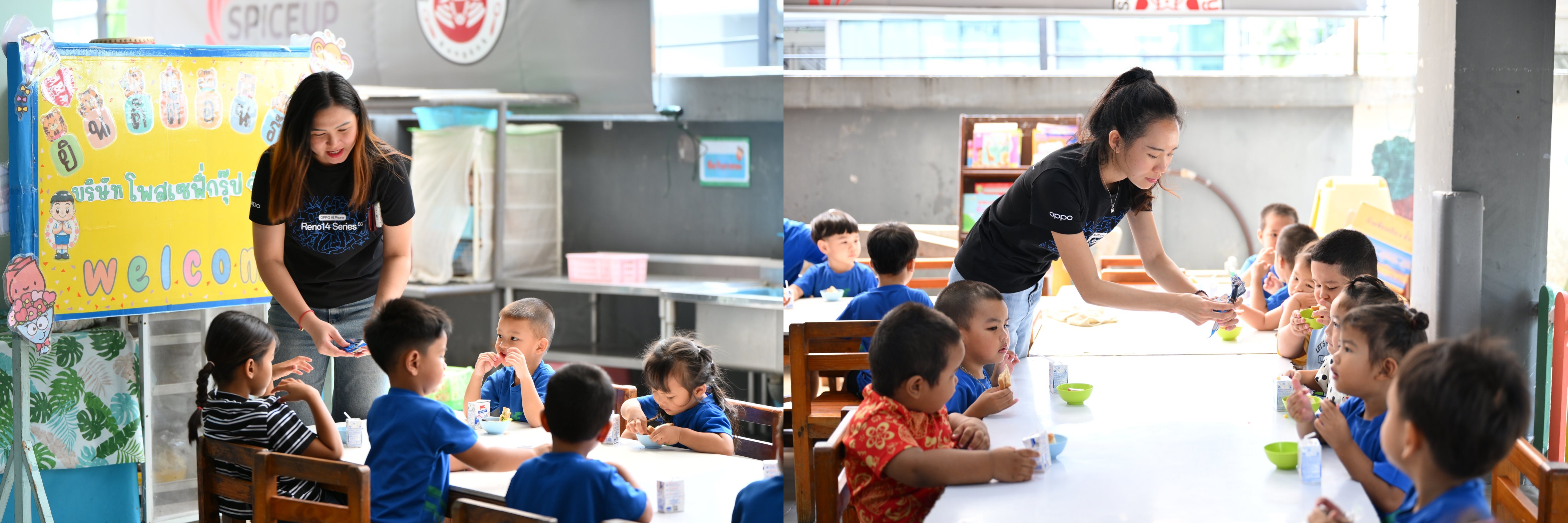 OPPO นำเสนออุปกรณ์เทคโนโลยีเพื่อการศึกษาที่ตอบโจทย์เด็กๆ อย่าง OPPO Pad SE และ OPPO Reno 13 F 5G โดย OPPO Pad SE รวม 16 เครื่อง โดย OPPO Pad SE แท็บเล็ตที่มาพร้อมแบตเตอรี่ขนาดใหญ่ 9340mAh และชาร์จไว 33W หน้าจอถนอมสายตา และโหมดจัดแต่งพิเศษสำหรับเด็ก จะเป็นเครื่องมือที่ช่วยมอบความบันเทิงไร้ขีดจำกัด พร้อมพื้นที่ปลอดภัยสำหรับการเรียนรู้ และช่วยเพิ่มประสิทธิภาพการทำงานด้วย Gemini ผู้ช่วยอัจฉริยะ AI ส่วน OPPO Reno13 F 5G สมาร์ตโฟน AI ที่อัปเกรดการถ่ายพอร์ตเทรตให้โปรยิ่งขึ้นด้วย AI Livephoto, AI Clarity Enhancer, AI Unblur และ AI Reflection Remover จะเป็นอุปกรณ์ที่ช่วยให้เด็กๆ ได้เก็บครบทุกช่วงเวลาสำคัญด้วยความคมชัด และเป็นสมาร์ตโฟนแอนดรอยด์แรกที่แชร์ข้ามไป iOS ได้ อีกทั้งยังมาพร้อมมาตรฐานกันน้ำ IP69 ซึ่งจะช่วยให้เยาวชนได้สำรวจ สร้างสรรค์การเรียนรู้ในรูปแบบใหม่ๆ ต่อยอดการสร้างสรรค์ของเยาวชนในอนาคต อีกทั้ง OPPO ยังจัดเลี้ยงอาหารเย็นที่เปี่ยมด้วยความสุขให้กับเด็กๆ โดยเฉพาะ