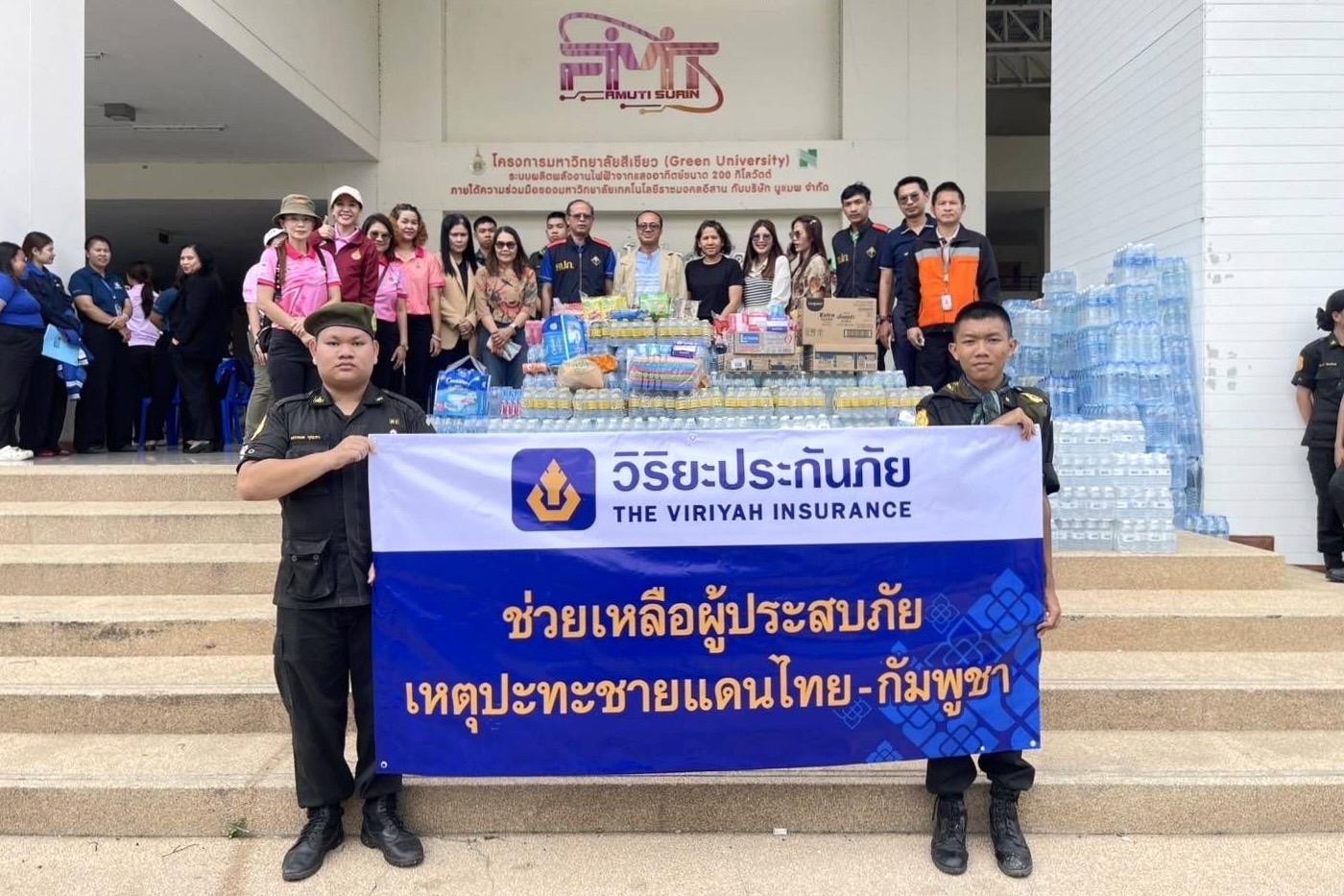 26 กรกฎาคม 2568 : ธีราทร แสงเงิน ผู้จัดการศูนย์ปฏิบัติการสินไหมทดแทนศรีสะเกษ บริษัท วิริยะประกันภัย จำกัด (มหาชน) นำกลุ่มวิริยะจิตอาสา มอบถุงยังชีพและเครื่องอุปโภค – บริโภค แก่ศูนย์รับบริจาคที่ว่าการอำเภอโนนคูณ เพื่อบรรเทาความเดือดร้อนเบื้องต้น และอำนวยความสะดวกด้านการดำรงชีวิตให้กับผู้ประสบภัยจากเหตุการณ์ความไม่สงบในพื้นที่ชายแดนไทย – กัมพูชา ตลอดจนสนับสนุนการปฏิบัติงานของเจ้าหน้าที่และจิตอาสาทุกภาคส่วน ในการทำหน้าที่เพื่อช่วยเหลือประชาชนได้อย่างมีประสิทธิภาพและปลอดภัยสูงสุด ณ ที่ว่าการอำเภอโนนคูณ จังหวัดศรีสะเกษ