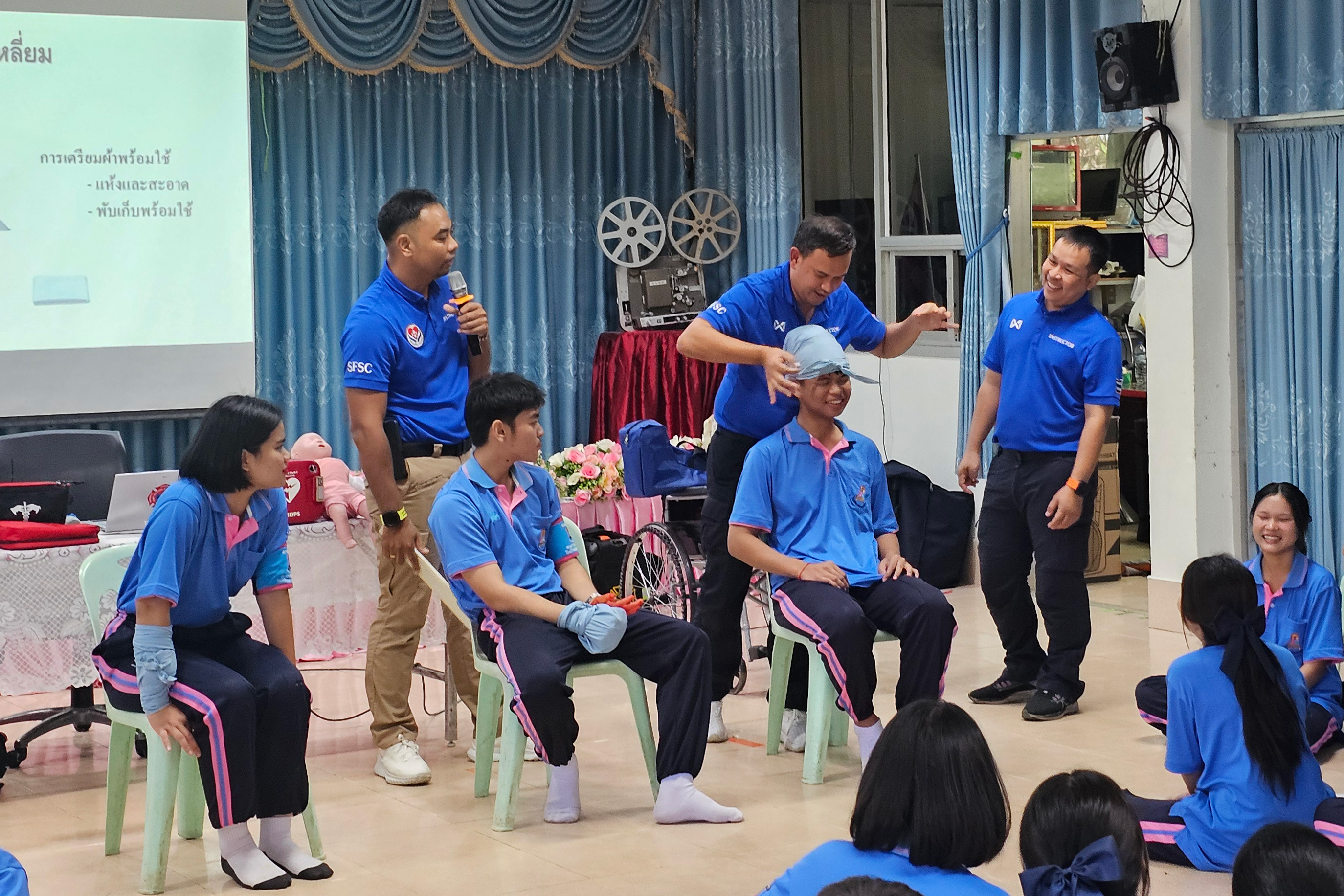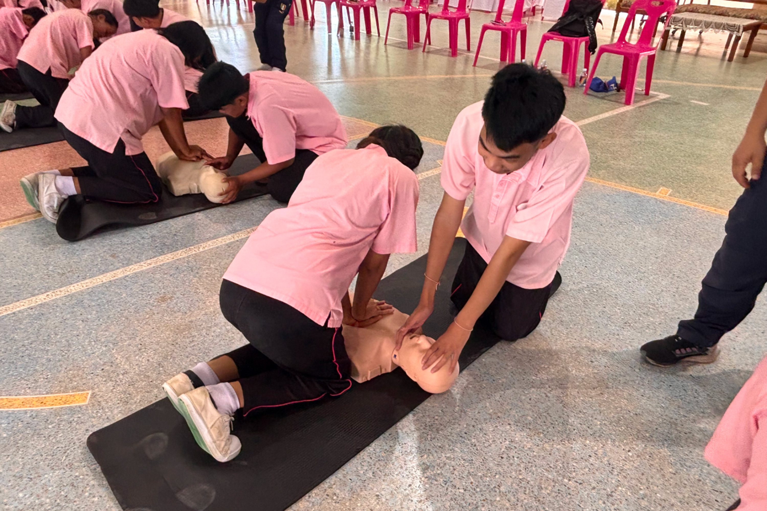 ภายในกิจกรรม พนักงานจิตอาสาบรรเทาภัยและวิทยากรได้แนะนำและสาธิตวิธีการปฐมพยาบาลเบื้องต้น พร้อมฝึกฝนให้น้องๆ เยาวชนได้ร่วมลงมือปฏิบัติอย่างถูกวิธี เช่น การรักษาบาดแผลทั่วไปและบาดแผลจากสัตว์มีพิษและไม่มีพิษ การห้ามเลือด การใส่เฝือก การช่วยเหลือเด็กและผู้ใหญ่จากการสำลักอาหาร รวมถึงการช่วยชีวิตพื้นฐานโดยการทำ CPR และการใช้เครื่อง AED ปั๊มหัวใจ นอกจากนี้ บริษัทฯ ยังได้มอบอุปกรณ์การปฐมพยาบาล รถเข็นผู้ป่วย ชุดเฝือกสำเร็จรูป และกระเป๋ายาพร้อมเวชภัณฑ์ให้แก่โรงเรียนต่างๆ สามารถใช้ประโยชน์ภายในโรงเรียนและยังสามารถช่วยเหลือผู้อื่นได้อีกด้วย