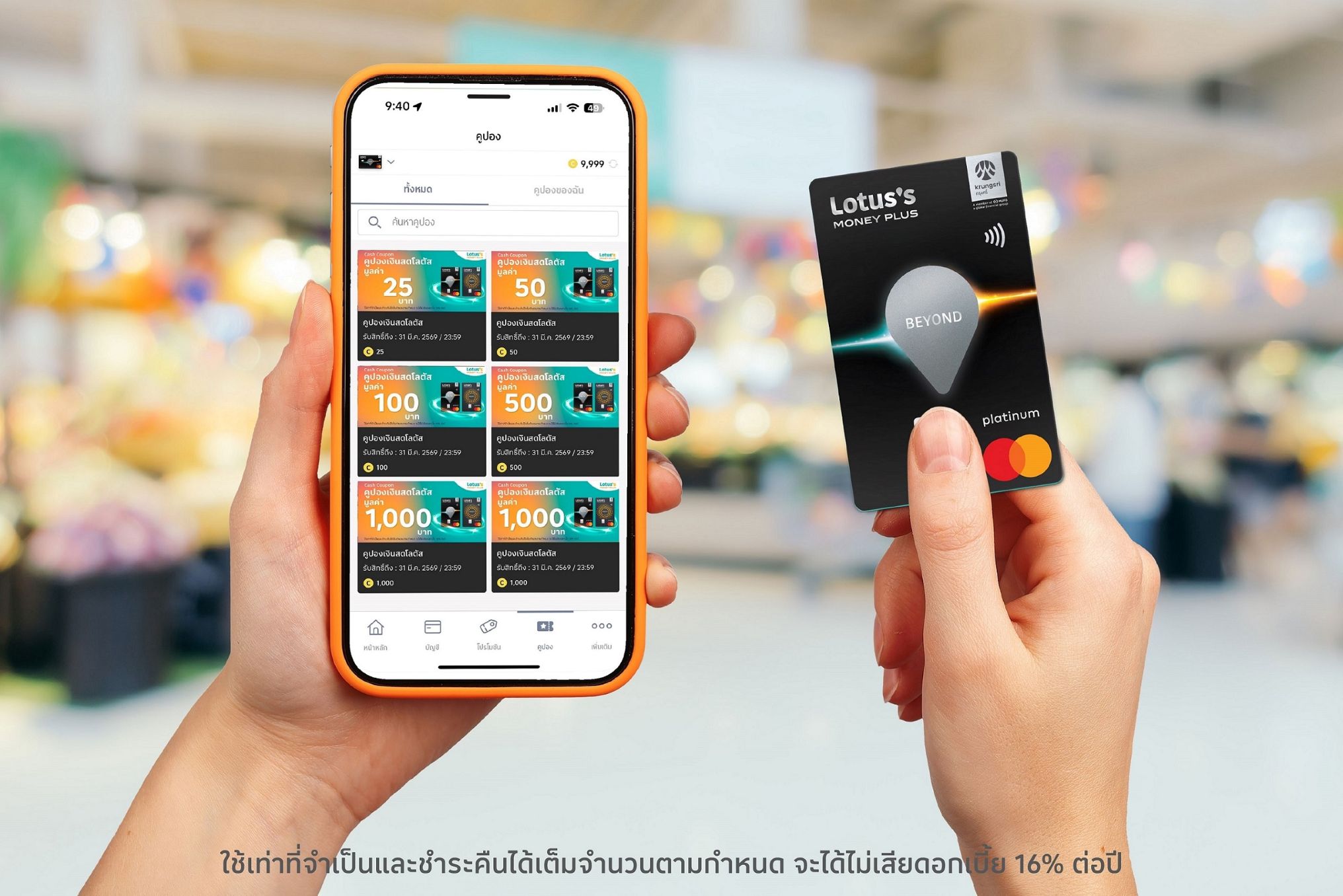 บัตรเครดิตโลตัส พลัสความสุข ทุกความคุ้มค่า มอบสิทธิประโยชน์สุดคุ้ม มอบโลตัสมันนี่คอยน์สูงสุด 6 เท่า เมื่อใช้จ่ายผ่านบัตรตามเงื่อนไข พร้อมสิทธิพิเศษอื่น ๆ เช่น ผ่อนสินค้า 0% ทุกชิ้นในห้างโลตัส, เติมน้ำมันที่ปั๊มบางจาก รับเครดิตเงินคืนสูงสุด 3%, คุ้มครองการซื้อสินค้าผ่านเว็บไซต์ วงเงินสูงสุด 20,000 บาทต่อปี, บริการช่วยเหลือฉุกเฉิน 24 ชั่วโมง, สิทธิพิเศษจาก Mastercard ทั้งโรงแรม รถเช่า และร้านอาหาร (เงื่อนไขเป็นไปตามที่บริษัทกำหนด) เป็นต้น ผู้ที่สนใจสมัครบัตร สามารถติดต่อเคาน์เตอร์บริการโลตัส มันนี่ พลัส ในห้างโลตัสทั่วประเทศ หรือสมัครผ่านแอป UCHOOSE หรือเว็บไซต์ www.lotussmoney.com สอบถามเพิ่มเติมโทร 1712 พิเศษ! สำหรับลูกค้าใหม่ที่สมัครบัตรเครดิตโลตัสตั้งแต่ 1 มิถุนายน 2568 – 31 สิงหาคม 2568 และได้รับอนุมัติบัตร พร้อมสะสมยอดใช้จ่ายผ่านบัตรเครดิตครบตามเงื่อนไขภายใน 60 วัน รับฟรี! กระเป๋าเดินทาง Caggioni รุ่น Ruby ขนาด 20 นิ้ว มูลค่า 4,950 บาท ทั้งนี้ ใช้เท่าที่จำเป็นและชำระคืนได้เต็มจำนวนตามกำหนด จะได้ไม่เสียดอกเบี้ย 16% ต่อปี