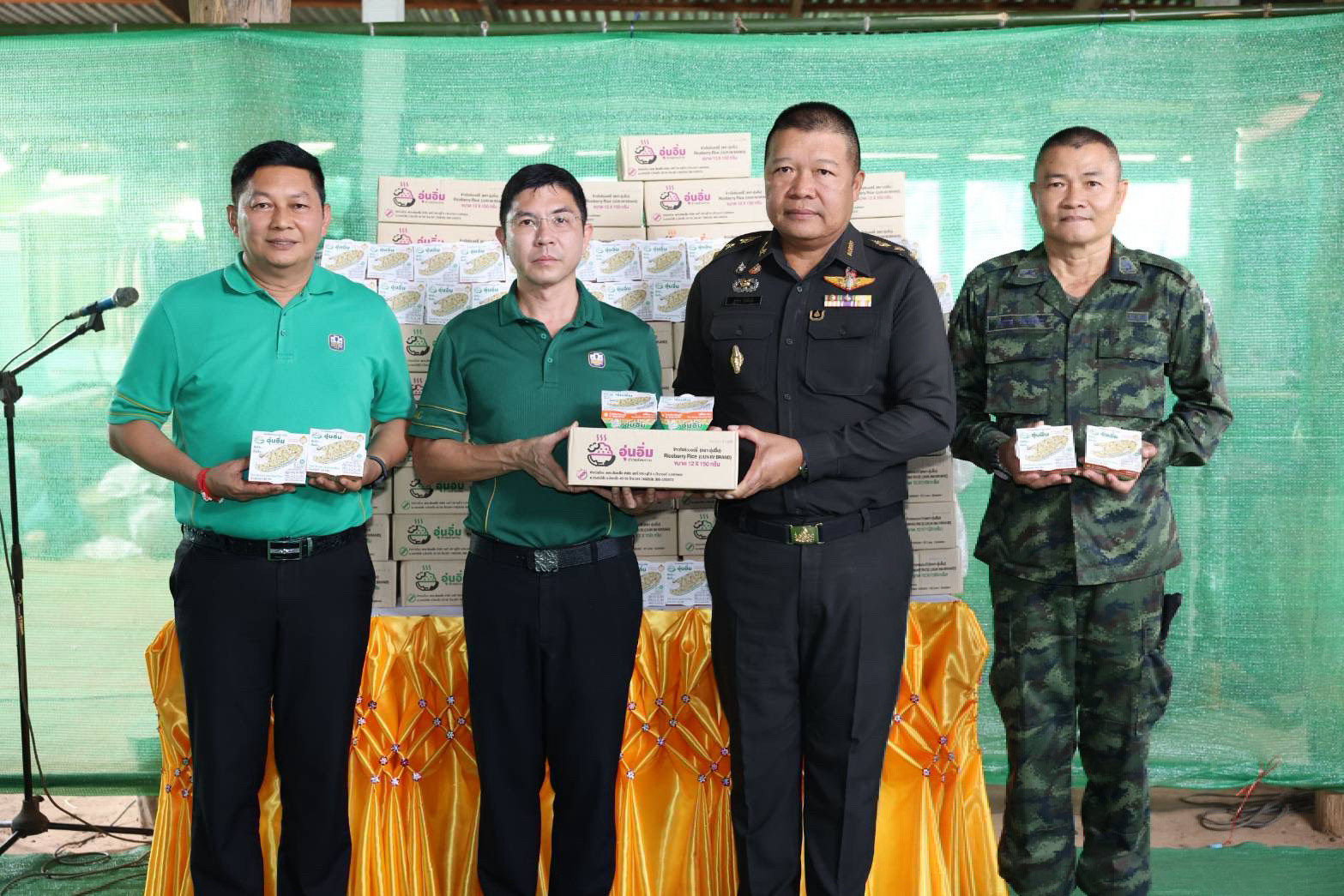 ในโอกาสนี้ ธ.ก.ส. ยังได้มอบข้าวพร้อมทาน ตราอุ่นอิ่ม ทั้งข้าวหอมมะลิ ข้าวกล้องหอมมะลิ และข้าวไรซ์เบอร์รี ที่สามารถรับประทานได้ทันที สะดวก สะอาด ปลอดภัย พกพาง่าย โดยไม่ต้องอุ่น และสามารถเก็บรักษาได้ในอุณหภูมิห้องนานถึง 18 เดือน ให้แก่กองทัพภาคที่ 2 สำหรับเป็นเครื่องบริโภคให้กับกำลังพลในพื้นที่ เพื่อสนับสนุนการดำเนินงานของทหารและเจ้าหน้าที่ ในการปฏิบัติหน้าที่เพื่อรักษาอธิปไตยและความสงบสุขให้กับประชาชนและประเทศชาติของชาติในพื้นที่ชายแดน หรือในภารกิจบรรเทาทุกข์ให้กับประชาชน โดยมี พ.อ. ฐาพล อ้อชัยภูมิ รองผู้อำนวยการรักษาความมั่นคงภายใน จังหวัดอำนาจเจริญ (ฝ่ายทหาร) เป็นผู้แทนในการรับมอบ นอกจากนี้ ผู้จัดการ ธ.ก.ส. ยังได้พบปะพูดคุยกับเกษตรกรลูกค้าของธนาคารในพื้นที่ตำบลลือ อำเภอปทุมราชวงศา จังหวัดอำนาจเจริญ ที่มาเข้าร่วมเป็นสักขีพยานภายในงาน