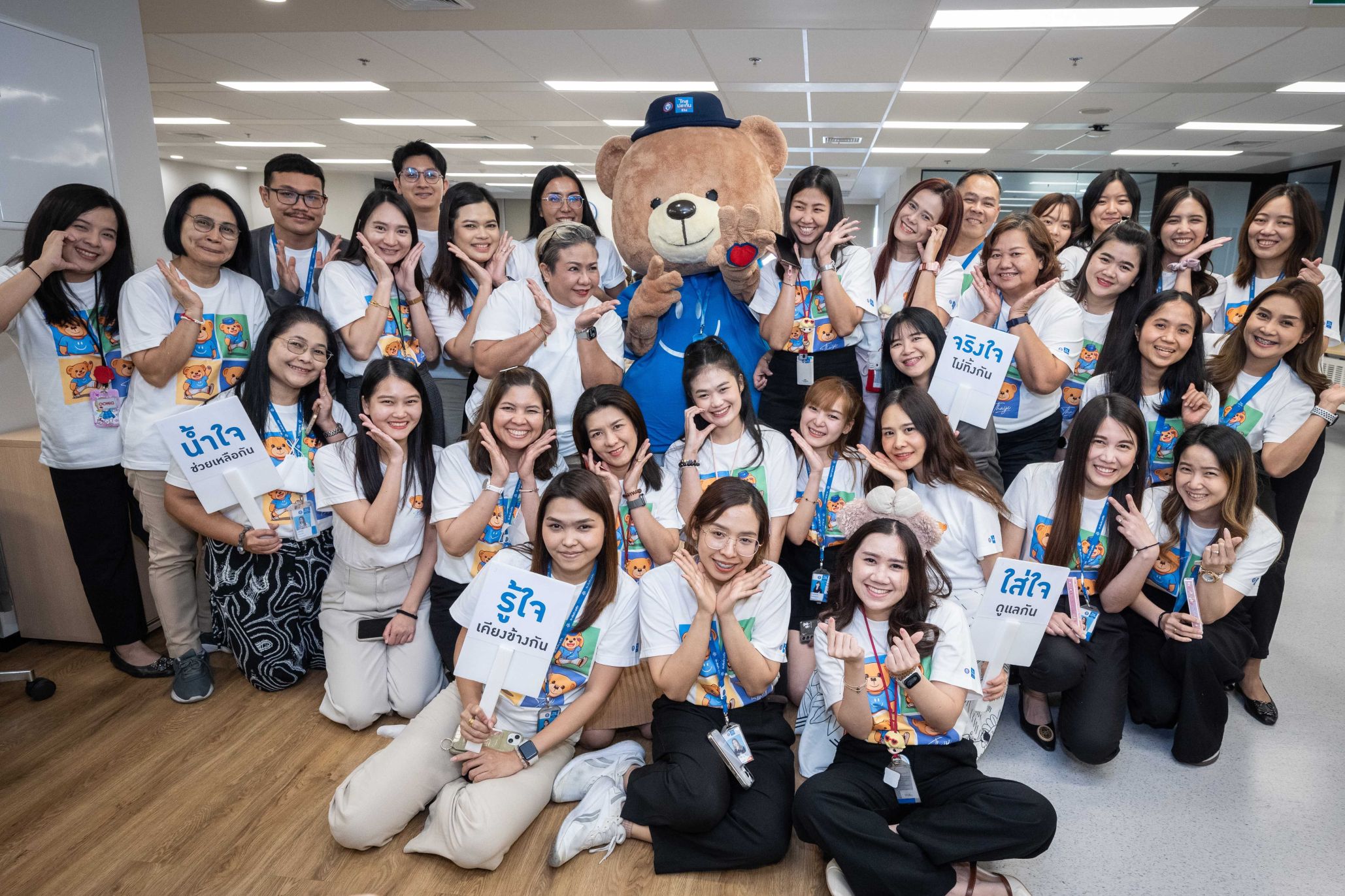 แม้ว่าปัจจุบัน ดิจิทัลและ AI เข้ามามีบทบาทในชีวิตมากขึ้น แต่สิ่งสำคัญของการทำธุรกิจประกันชีวิตยังอยู่ที่การปฏิสัมพันธ์และการดูแลกันระหว่างบุคคล หรือ Human Touch ไทยประกันชีวิตจึงสร้างความแตกต่างด้วยการกำหนดแนวคิดการดำเนินธุรกิจ ‘ดูแลด้วยหัวใจ’ หรือ ‘OMOTENASHI’ เพื่อยกระดับการส่งมอบคุณค่าการดูแลที่ยั่งยืนและสร้างประสบการณ์ที่ดียิ่งกว่าให้กับลูกค้าและผู้มีส่วนได้เสีย (Stakeholders) ผ่านการปลูกฝัง Mindset บุคลากร ให้มีจิตวิญญาณของการดูแลทุก Stakeholders เสมือนคนในครอบครัว ด้วยแก่นของการมี ‘น้ำใจ – ช่วยเหลือกัน ใส่ใจ – ดูแลกัน รู้ใจ – เคียงข้างกัน และจริงใจ – ไม่ทิ้งกัน’ และเพื่อให้แนวคิดการส่งมอบคุณค่าการดูแลเป็นรูปธรรม ไทยประกันชีวิตจึงเปิดตัว “หมีไทยจิ” (THAIJI) สัญลักษณ์การดูแลด้วยหัวใจ และนำแก่นของ OMOTENASHI มาพัฒนาให้เป็นคาแรกเตอร์ของ