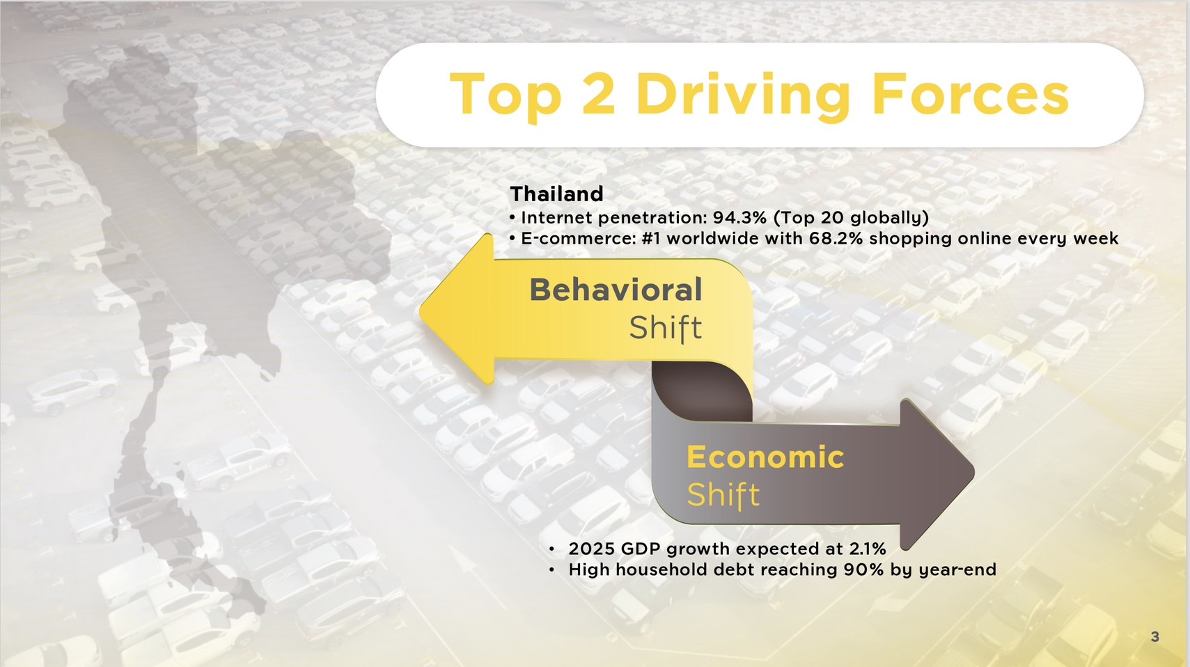 กรุงเทพฯ, 27 สิงหาคม 2568 : นายคงสิน คงคา ประธานคณะเจ้าหน้าที่ด้านธุรกิจสินเชื่อยานยนต์ ธนาคารกรุงศรีอยุธยา จำกัด (มหาชน) เปิดเผยว่า ท่ามกลางภาวะเศรษฐกิจที่ชะลอตัว และภาระหนี้ครัวเรือนที่ยังอยู่ในระดับสูง กรุงศรี ออโต้เชื่อว่ากุญแจสำคัญในการกำหนดทิศทางธุรกิจสินเชื่อยานยนต์ ไม่ใช่เพียงแค่การพร้อมเผชิญกับความท้าทาย แต่คือการมองเห็นแรงขับเคลื่อนสำคัญที่จะส่งผลต่อการเปลี่ยนแปลงของธุรกิจในอนาคต (Driving Force) เพื่อให้เราสามารถเตรียมพร้อมและปรับตัวได้อย่างทันท่วงที